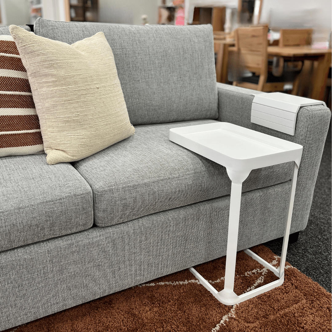 The Studio Sofa Side Table in White is stylish and modern. If space is at a premium, this sofa/side table is a great alternative to a coffee table.