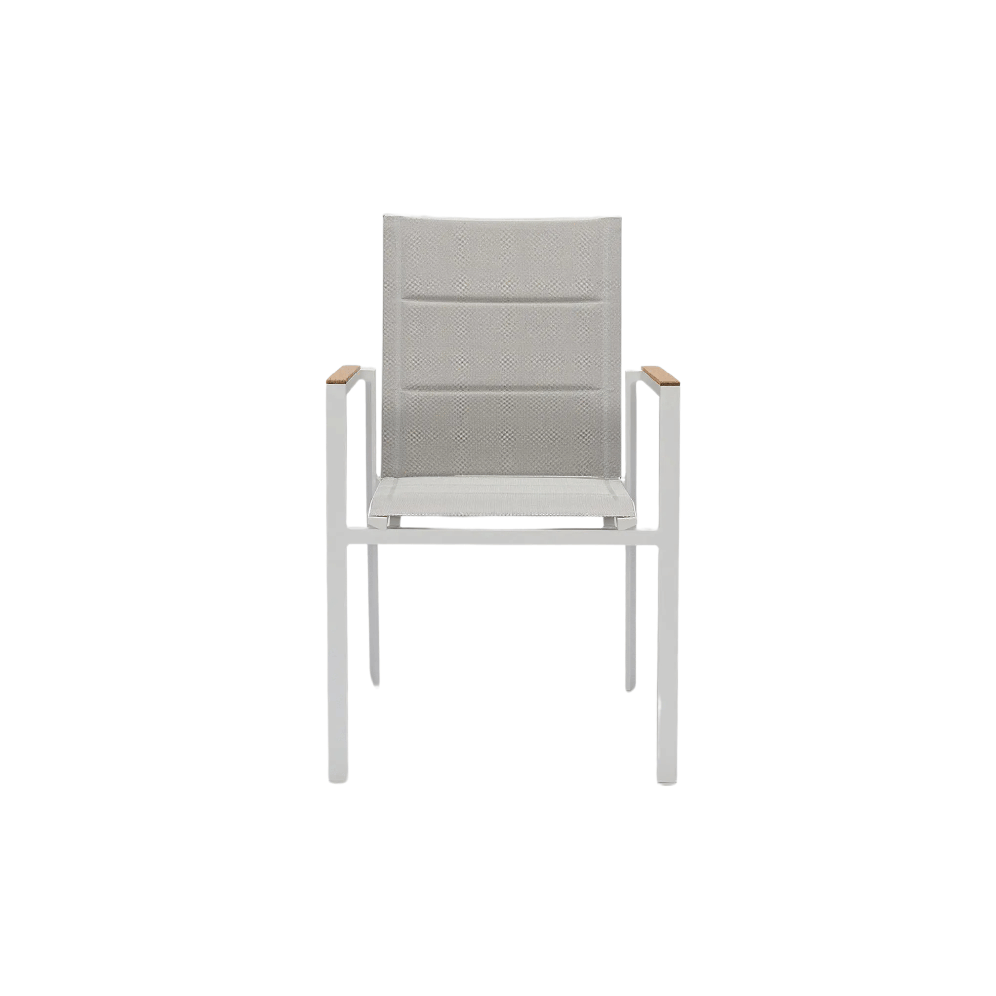 Featuring a strong and sturdy powder-coated matte white aluminium frame wrapped in Textilene synthetic fabric, the Copenhagen chair remains robust for those long summer nights.