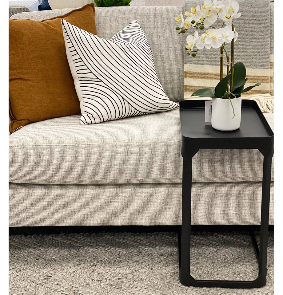 The Studio Sofa Side Table in Black is stylish and modern. If space is at a premium, this sofa/side table is a great alternative to a coffee table.
