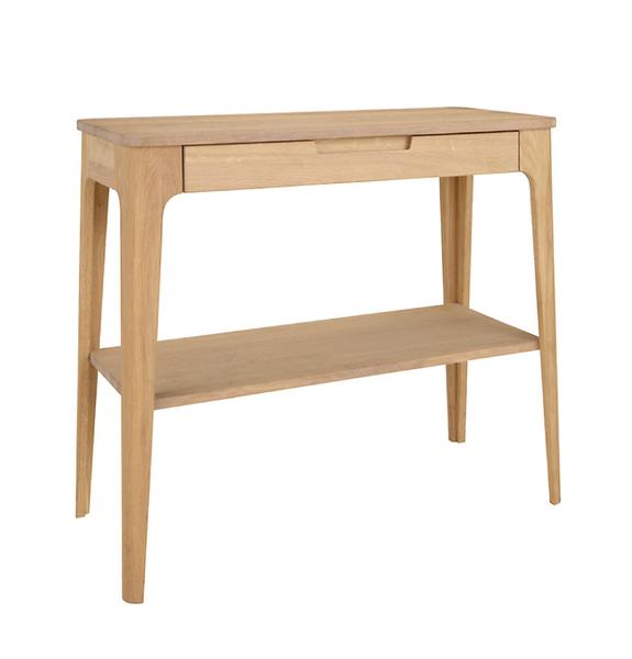 Our New Amalfi Console table with its sleek modern design is made from Solid Oak and an Oak Timber Veneer top. This console table will be a stylish addition to your living room.