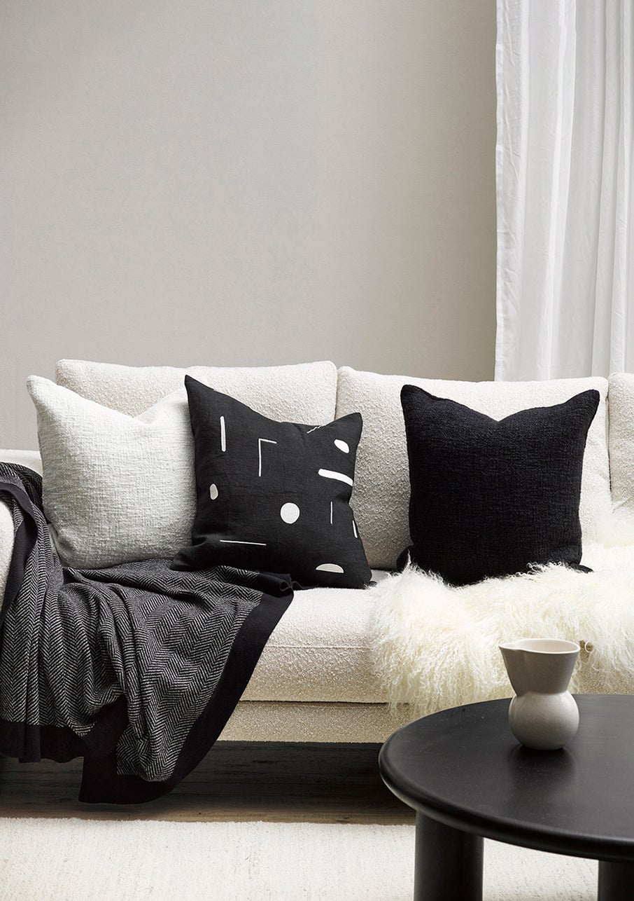 Engage your senses with the exceptional texture and soft luster of the Cyprian. Thick, handwoven slub yarns offer an artisan aesthetic, while the deep, midnight tone creates a moody and contemporary space. The minimal design makes the Cyprian a versatile pairing cushion, or a beautiful feature when used on its own.