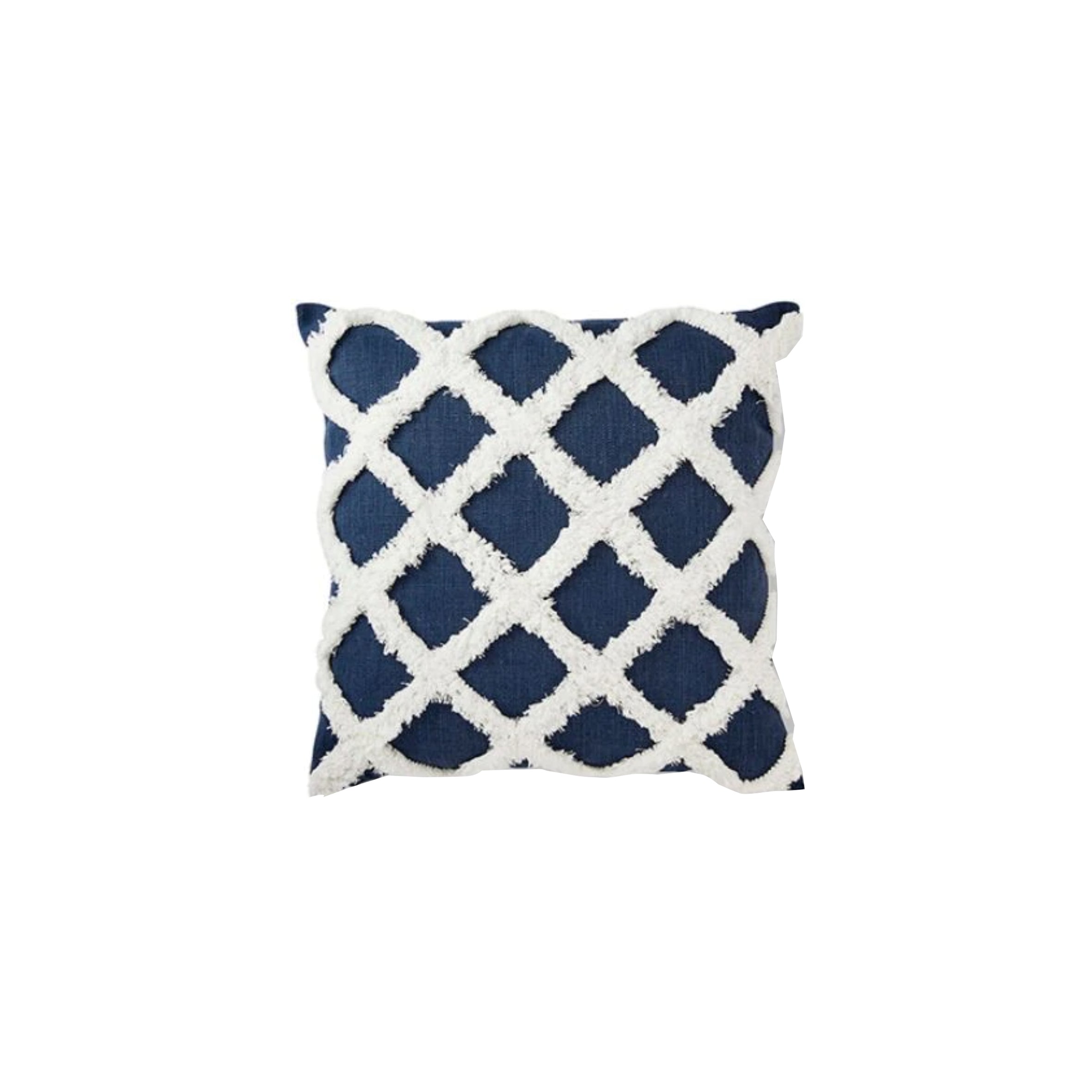 Featuring a soft, pure white diagonal tuft on an ochre linen base, our Derby Navy Check Cushion brings an element of texture to any couch or bedspread.