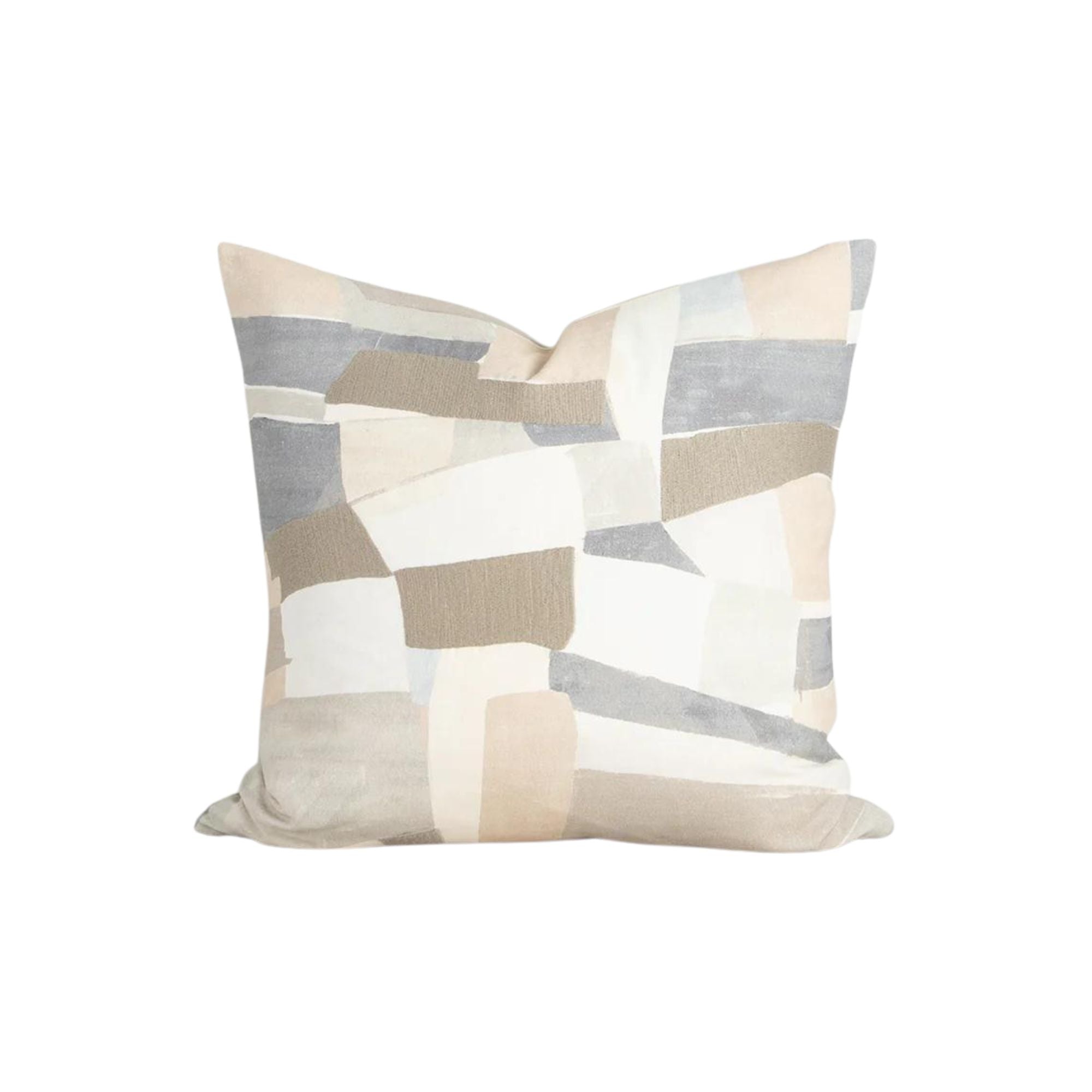 Soft tones and abstract shapes come together in the beautiful design of our Lucio cushion. Screen-printed onto a dense cotton base, the hand-painted design calls to mind the ariel aerial view of fields and Mediterranean villages. Sections of matte embroidery add a subtle dimension to this piece.