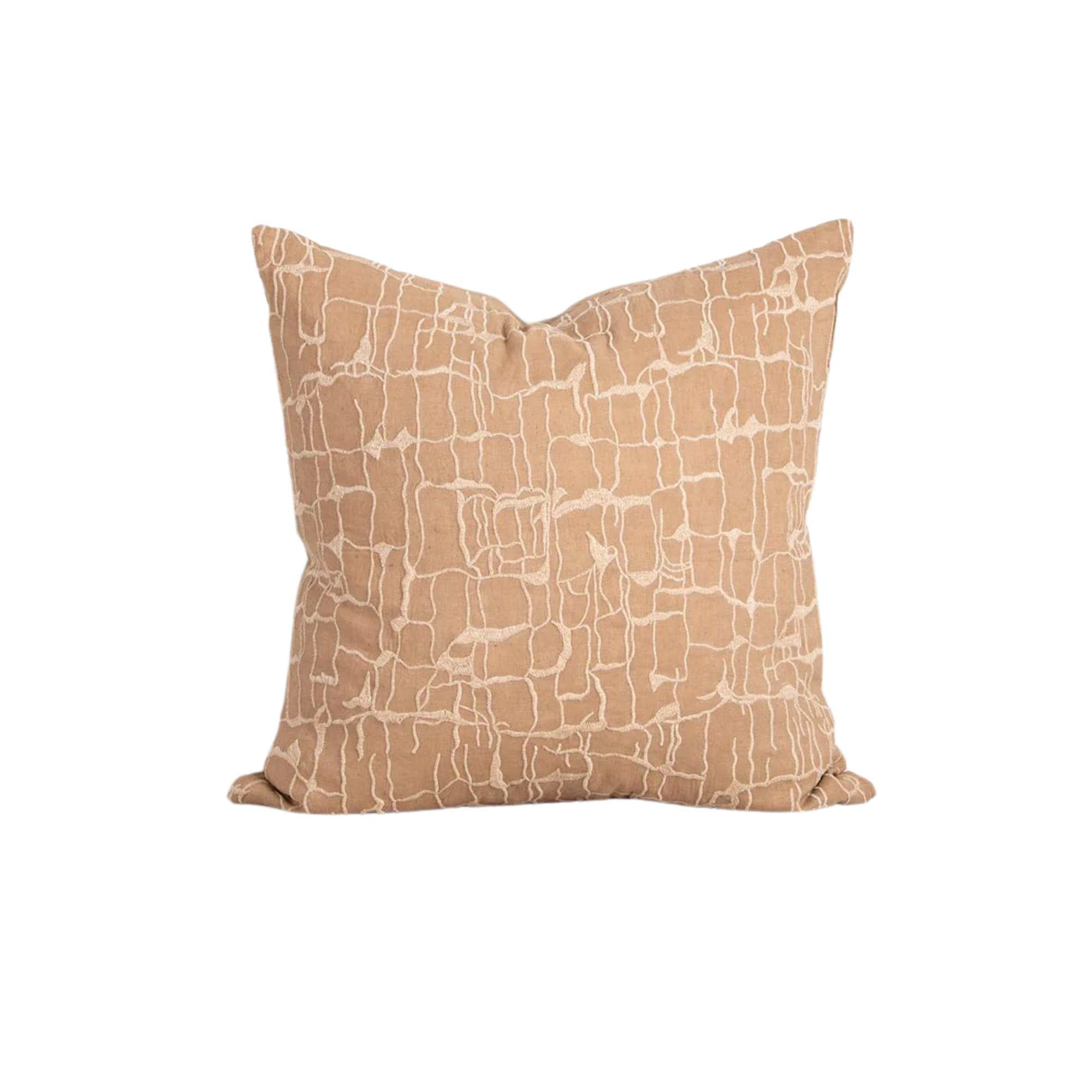 Delicate webbing and the warm hues of sunset combine in the ethereal design of the Triton cushion. Crafted on a linen base, a gentle sense of movement is captured through a matte, tone-on-tone embroidery, adding a subtle, sensory dimension to this piece.