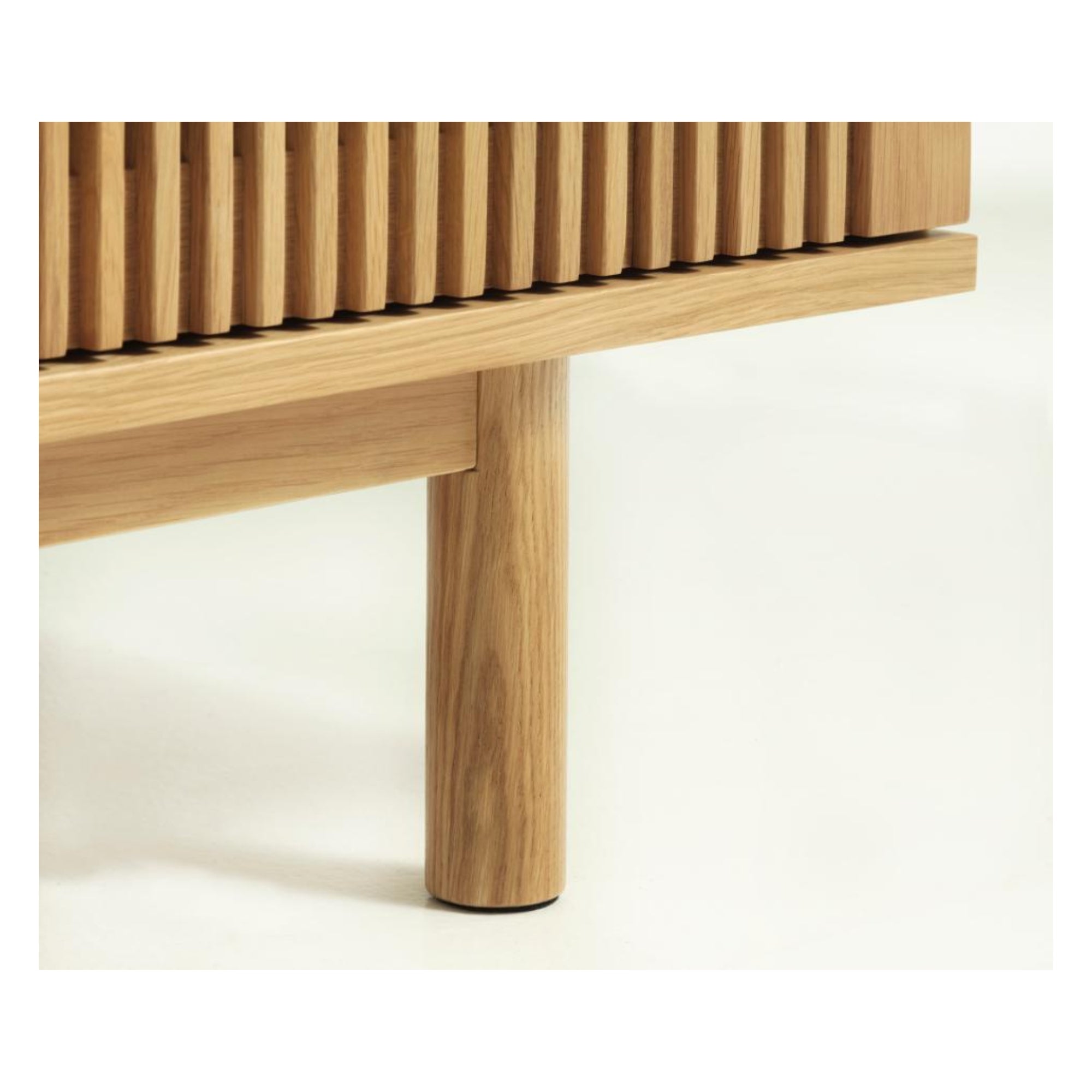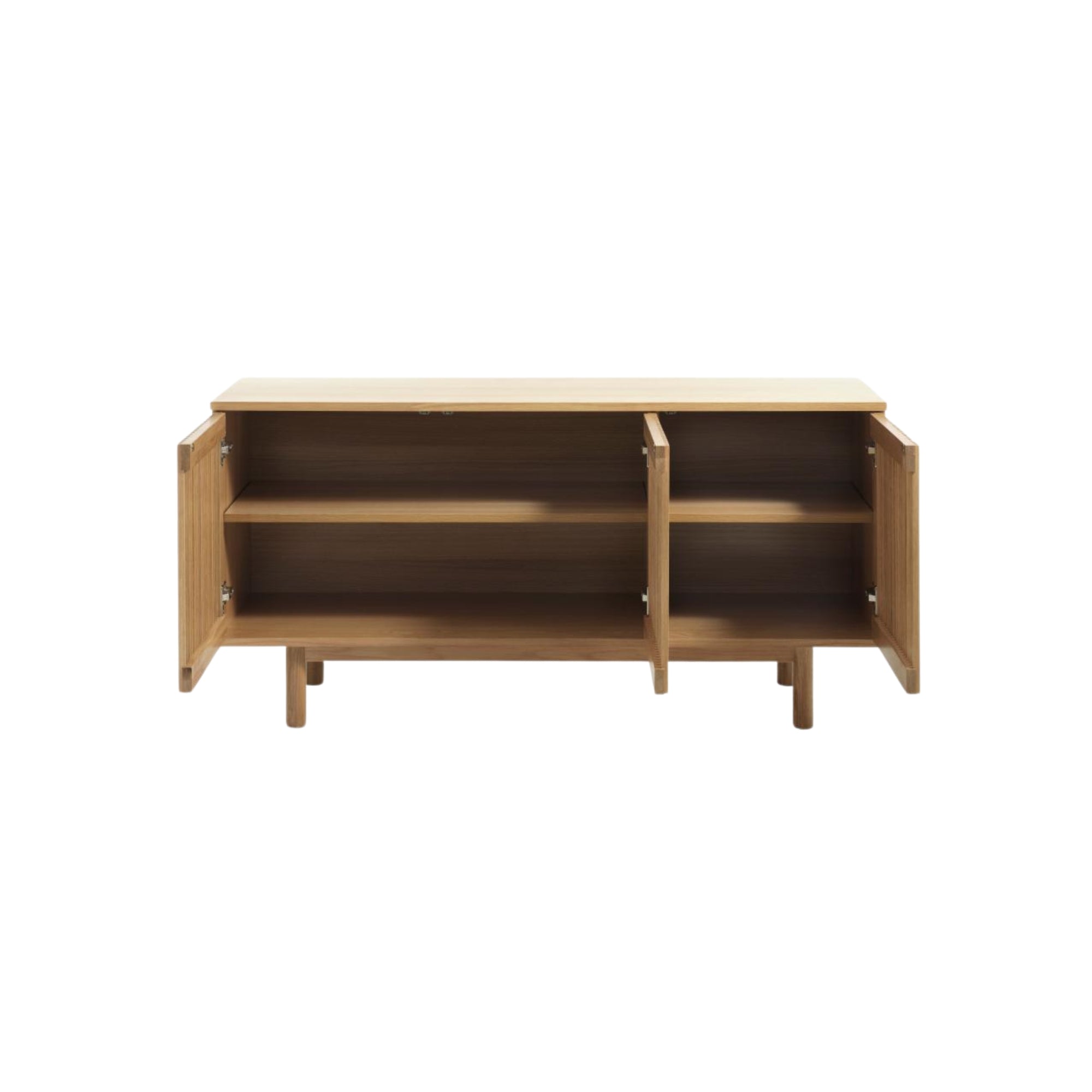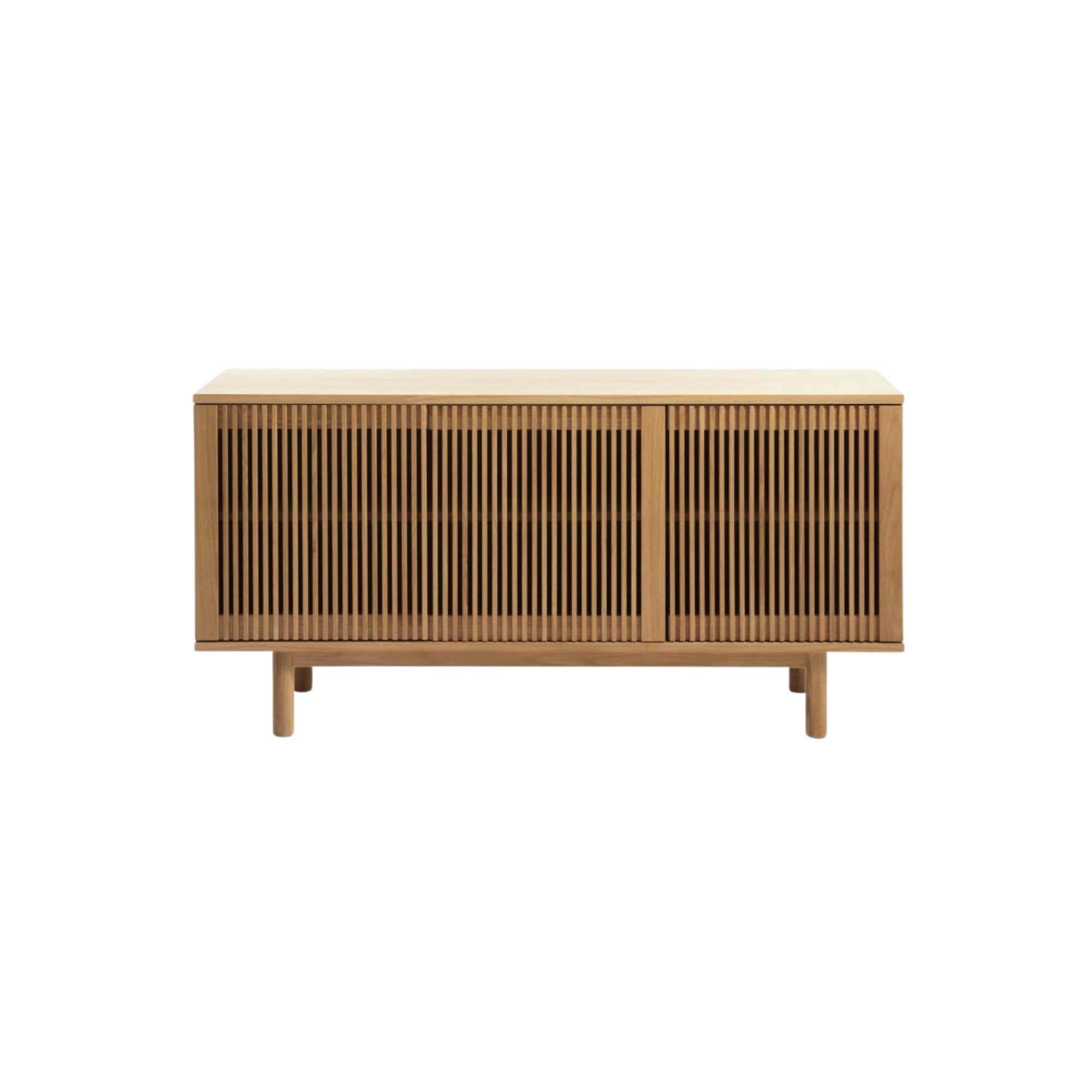 The Tyson Sideboard is a stylish cabinet featuring a natural oak finish and oak slats for a modern sleek look.