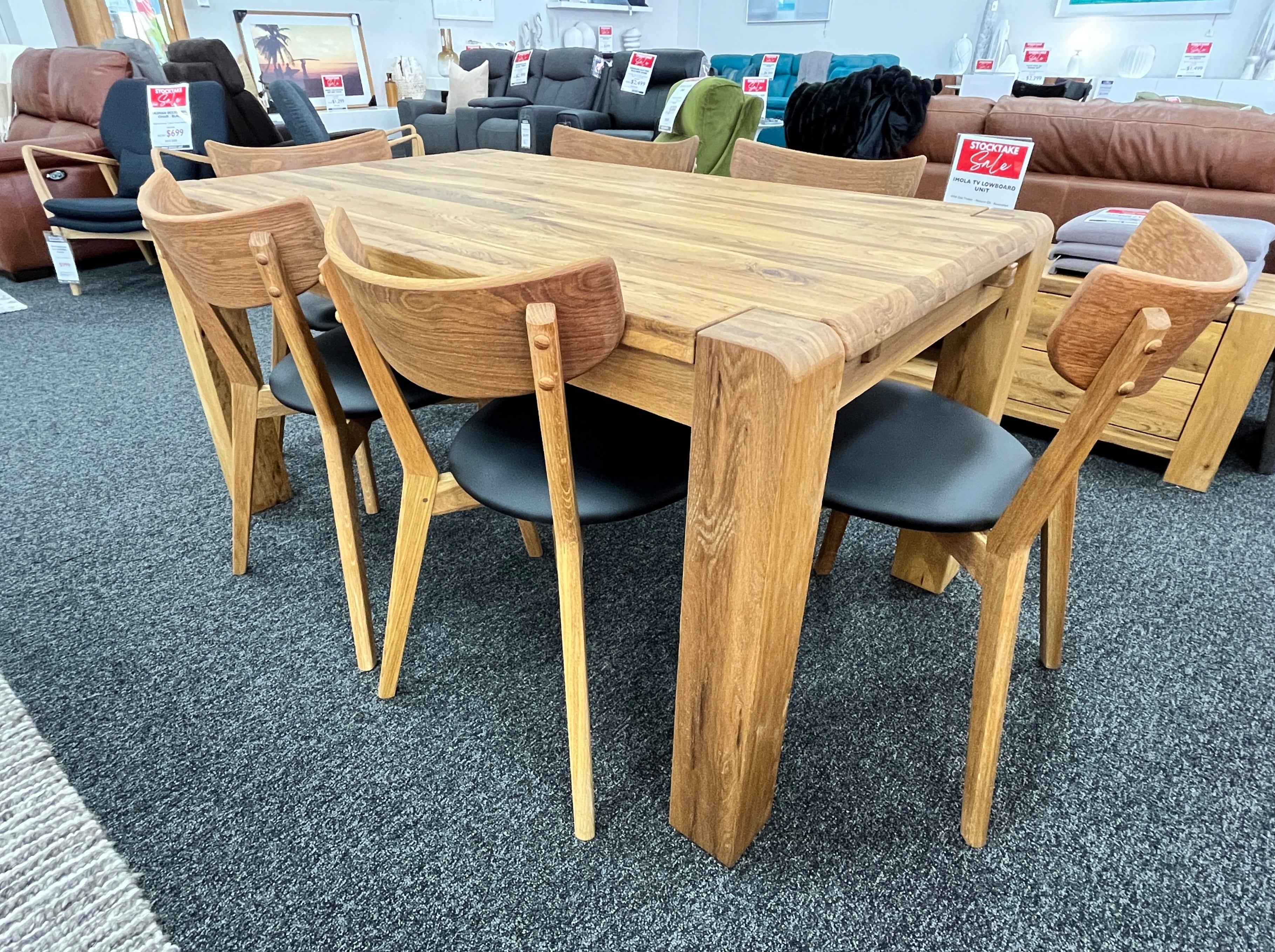 Bring the warmth and charm of a rustic design to your dining room with our beautiful 7-piece Imola / Pisa oak dining set. Crafted from naturally oiled solid oak wood, this set features rounded edges and a stunning natural finish that highlights the unique grain patterns of the wood. The table can be extended with the Imola dining table extension leaf (sold separately).