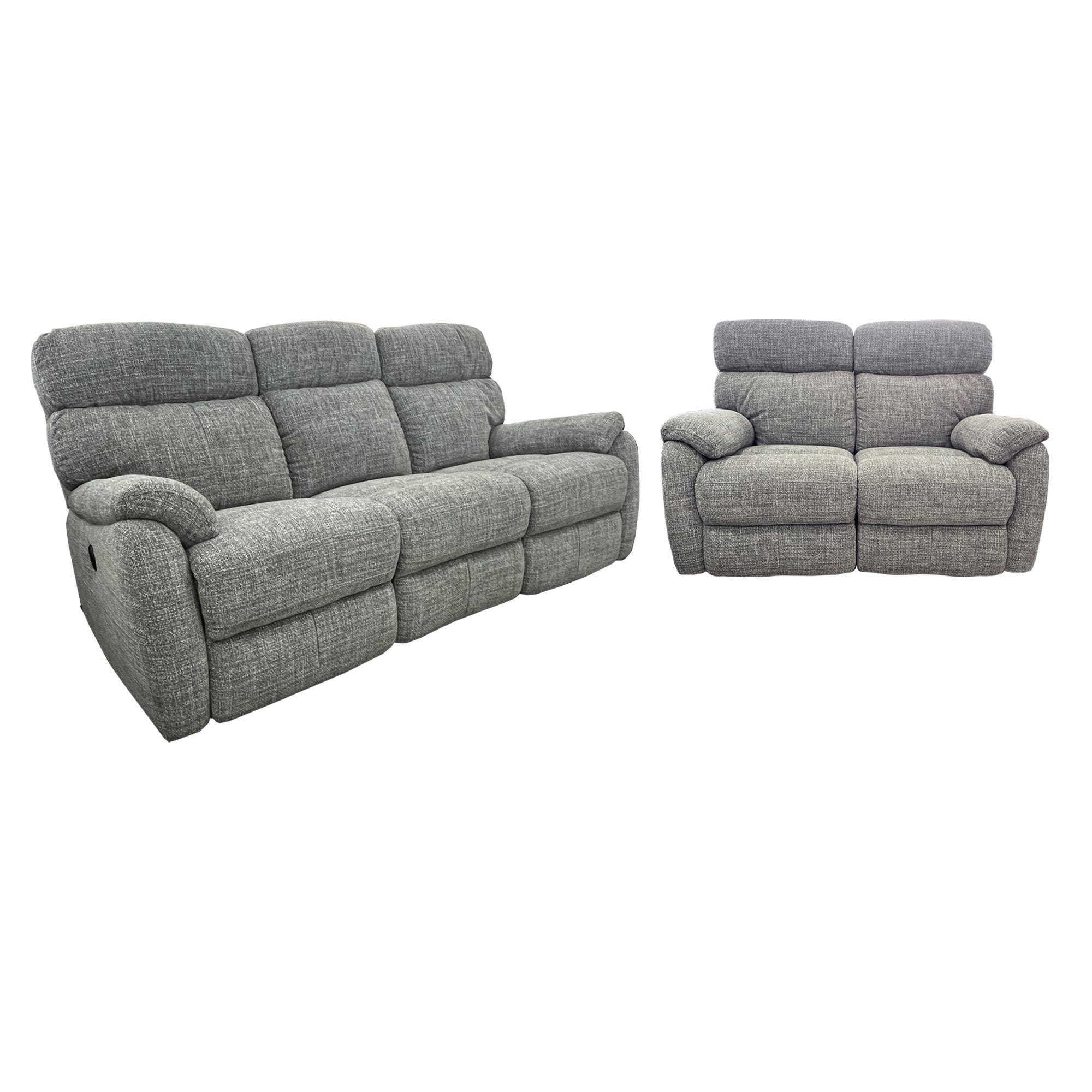 The Cortez lounge suite in Urban Sofa Thunderstorm fabric includes a 3-seater & 2-seater sofa with electric recliners.