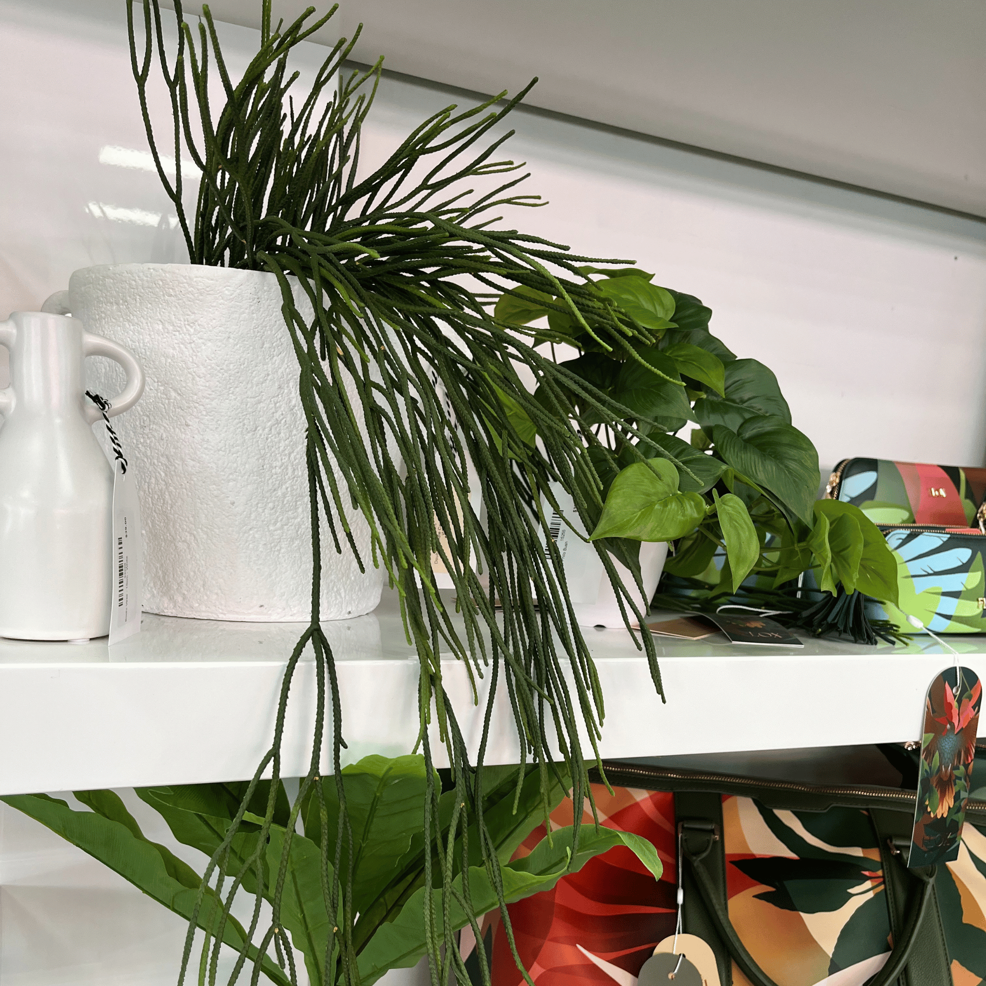 Elevate your space with our beautiful, potted hanging Rhipsalis, perfectly styled in a ribbed black pot.