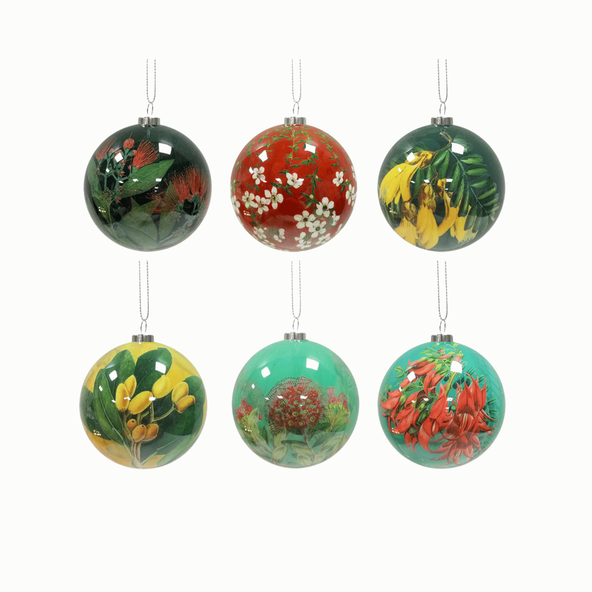 A beautiful box set of six New Zealand Native Flora Christmas baubles. Lightweight, made from coated paper. It is perfect as a gift or for your own tree. These lovely designed decorations come in a handy box for packing away.