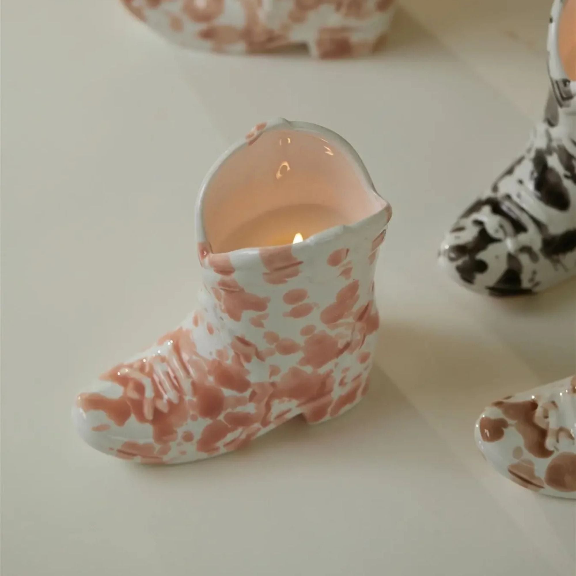 The Nashville Cowboy Boot - Cactus Flower 6oz candle comes with a speckled glaze and western inspired fragrance. Each boot candle features embossed detail and a glossy finish. Repurpose as a pencil cup or floral vase to add a little Tennessee charm to your home.