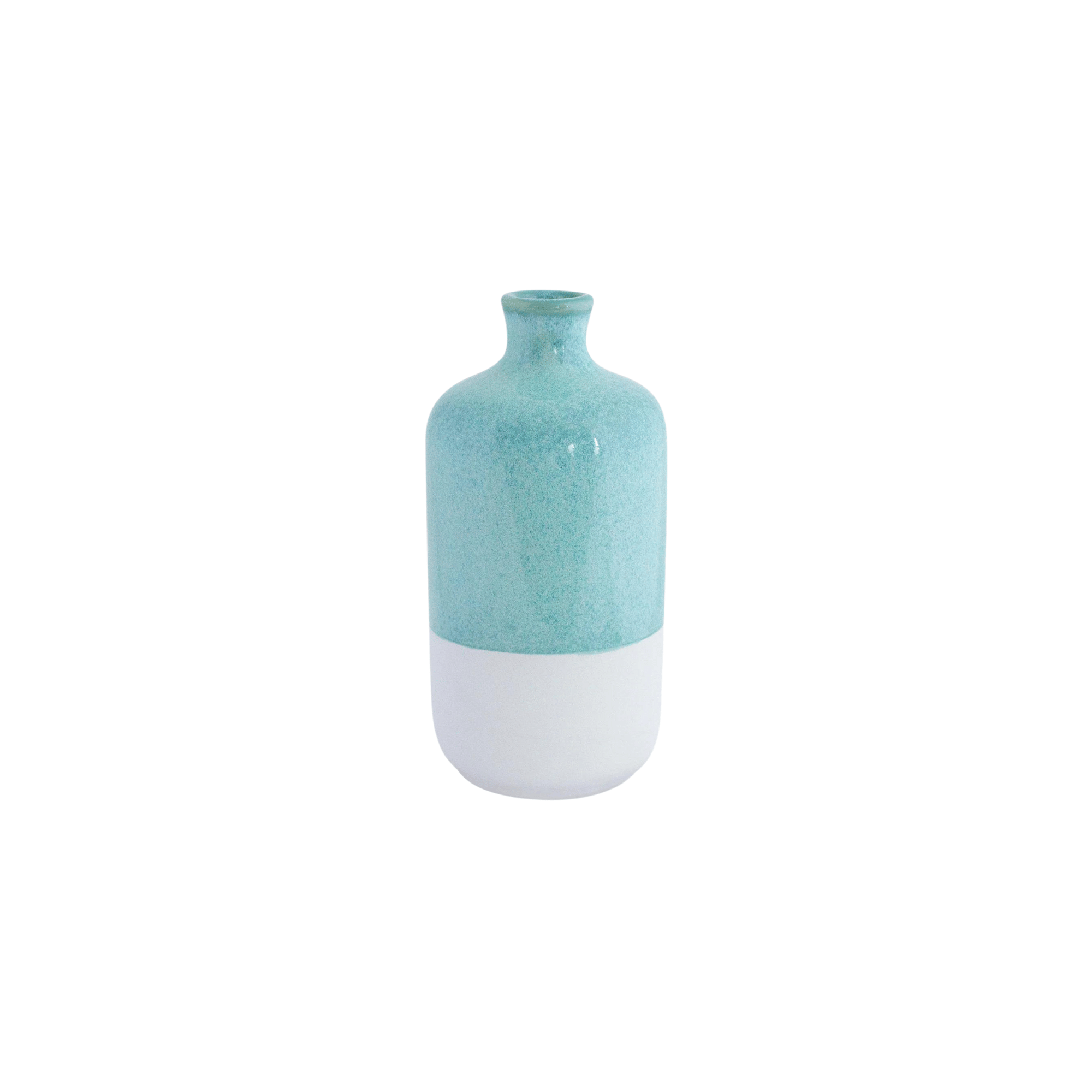 Add a splash of colour to your home with the Syros Botte Vase, boasting a beautiful aqua and grey ombre effect. Its unique, powdery-textured base and bright speckles create a charming contrast, whether filled with flowers or displayed solo.