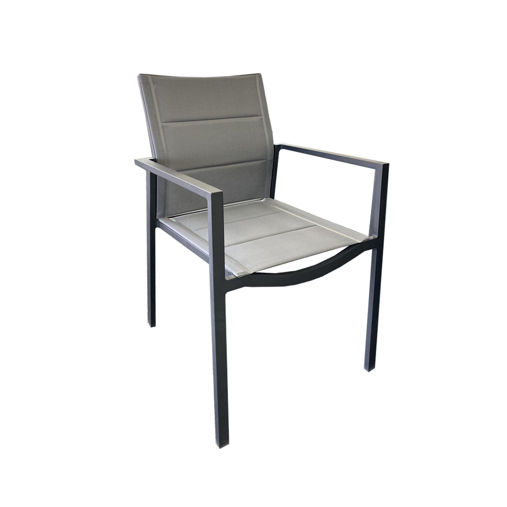 The charcoal Bermuda outdoor dining chair features powder-coated aluminum.
