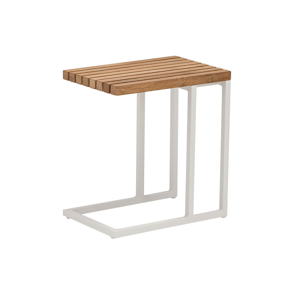The White Cube Outdoor Sofa Table is a compact table that can slide under your outdoor sofa creating the perfect spot for your cuppa. This white powder-coated aluminium and teak timber sofa table will coordinate well with your existing aluminium outdoor furniture or sofa.