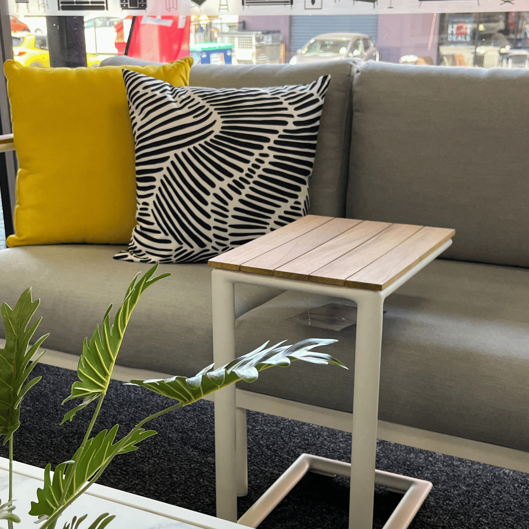 Our Grenada Outdoor Sofa Table in White combines classic styling with a contemporary appeal. This range will complement any outdoor space. Designed to slide underneath your outdoor sofa, this small outdoor table will create the perfect spot for your beverage.
