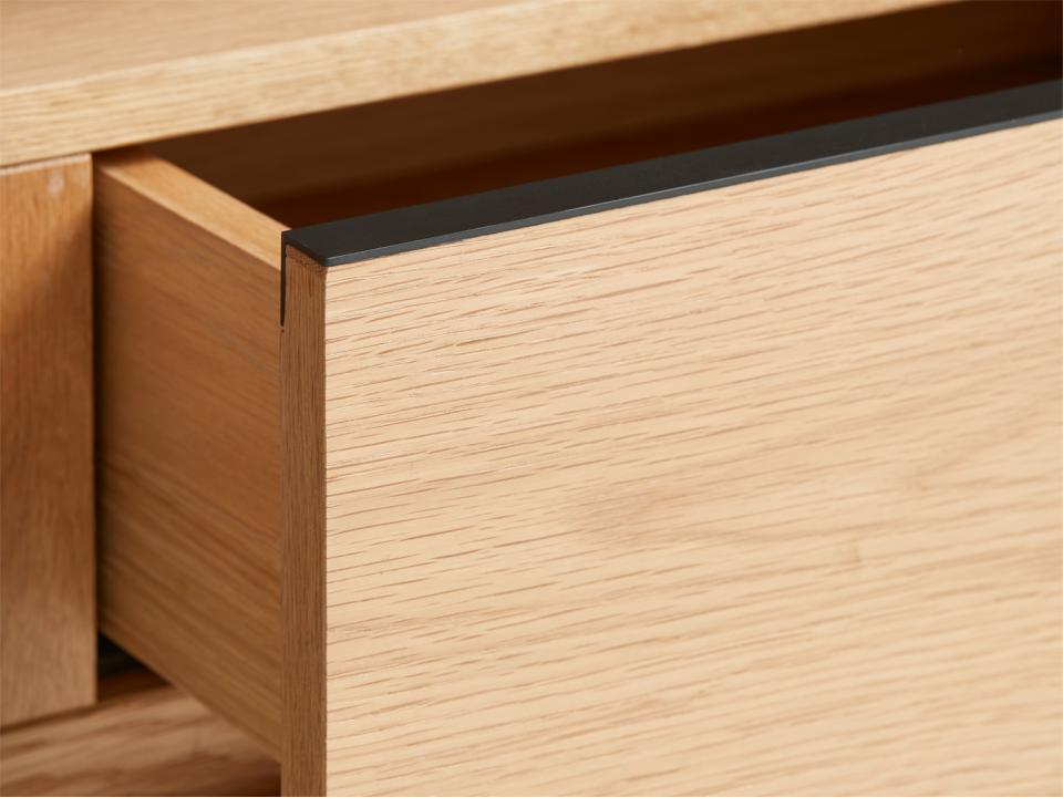 The Livorno collection is a contemporary style range with both an elegant and rustic feel. Crafted from natural coloured American white oak bringing a warm natural look with contrasting black metal handles & solid black metal u-shaped legs.