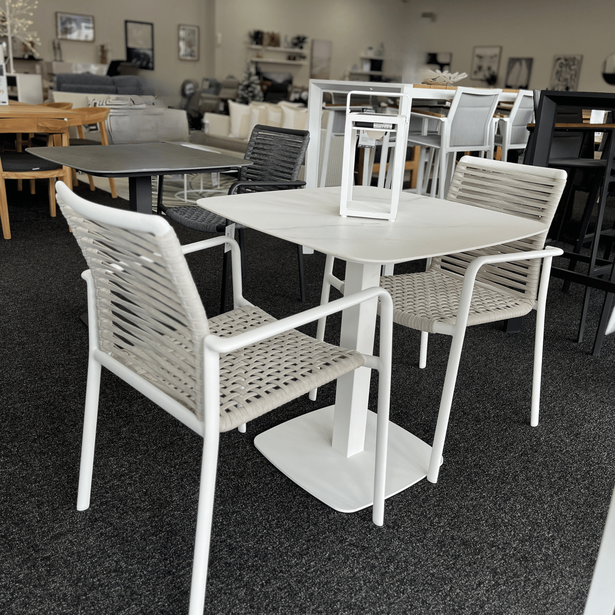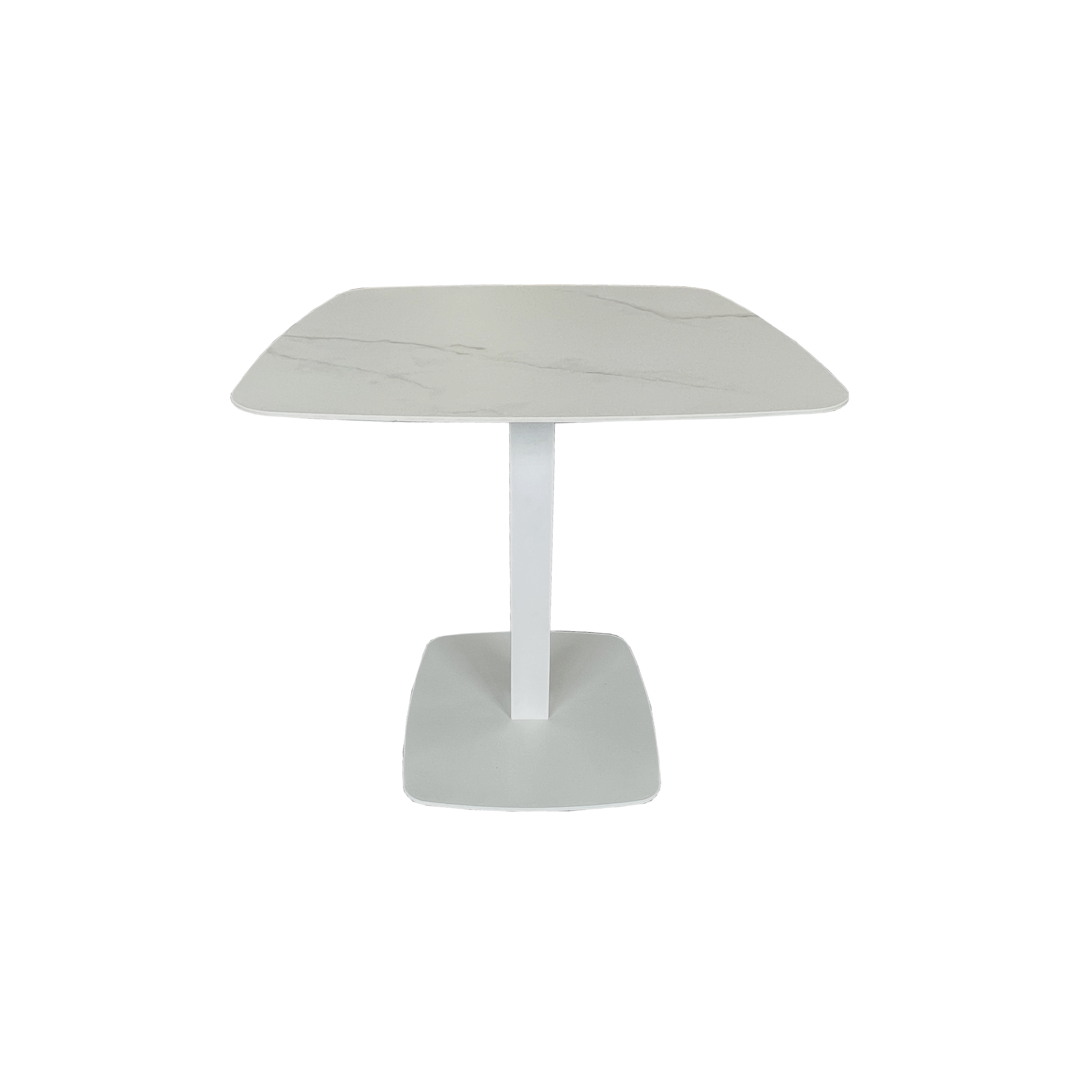 Enjoy outdoor dining in style with this elegant and durable white ceramic table. Its sleek design and sturdy construction make it a must-have for any cozy outdoor space.