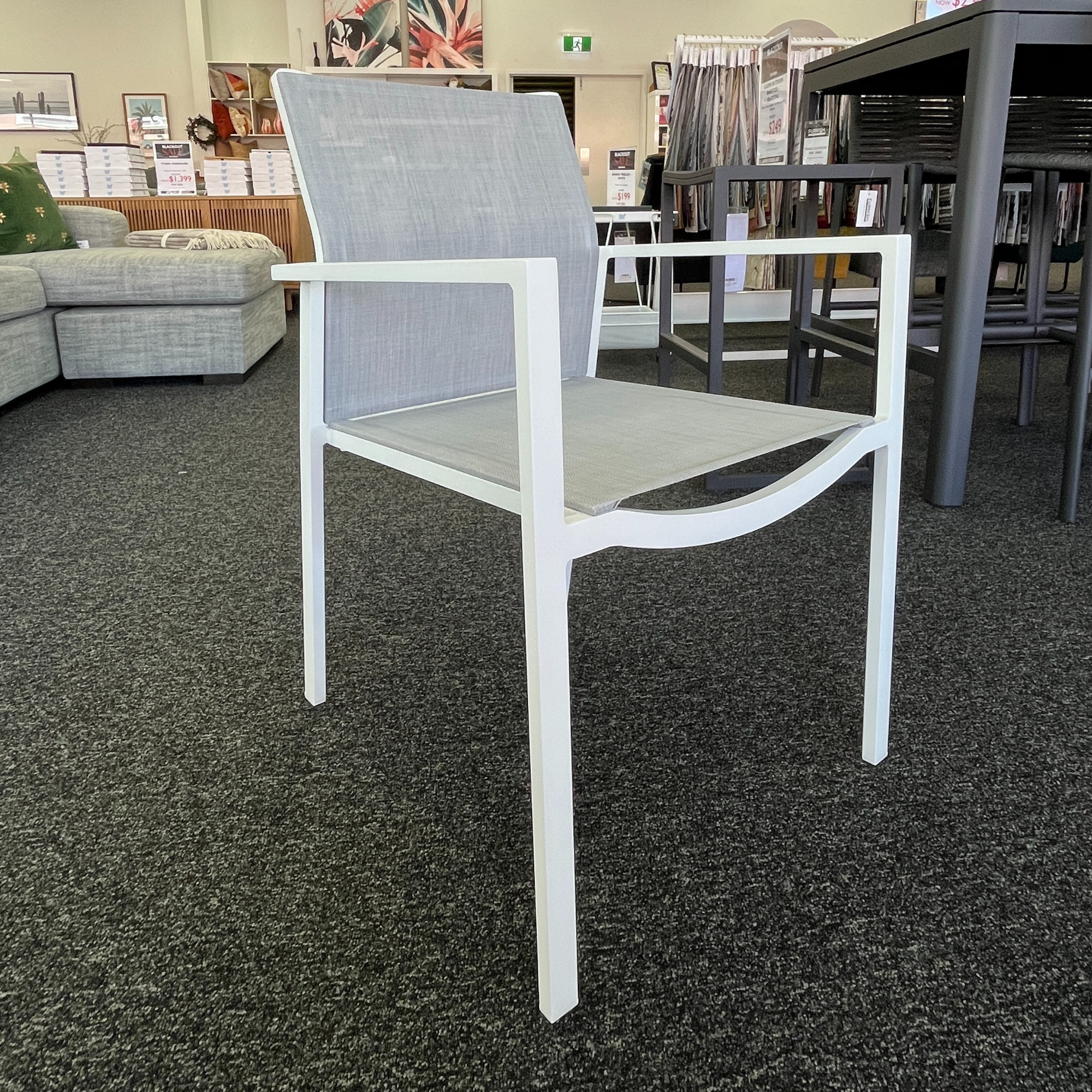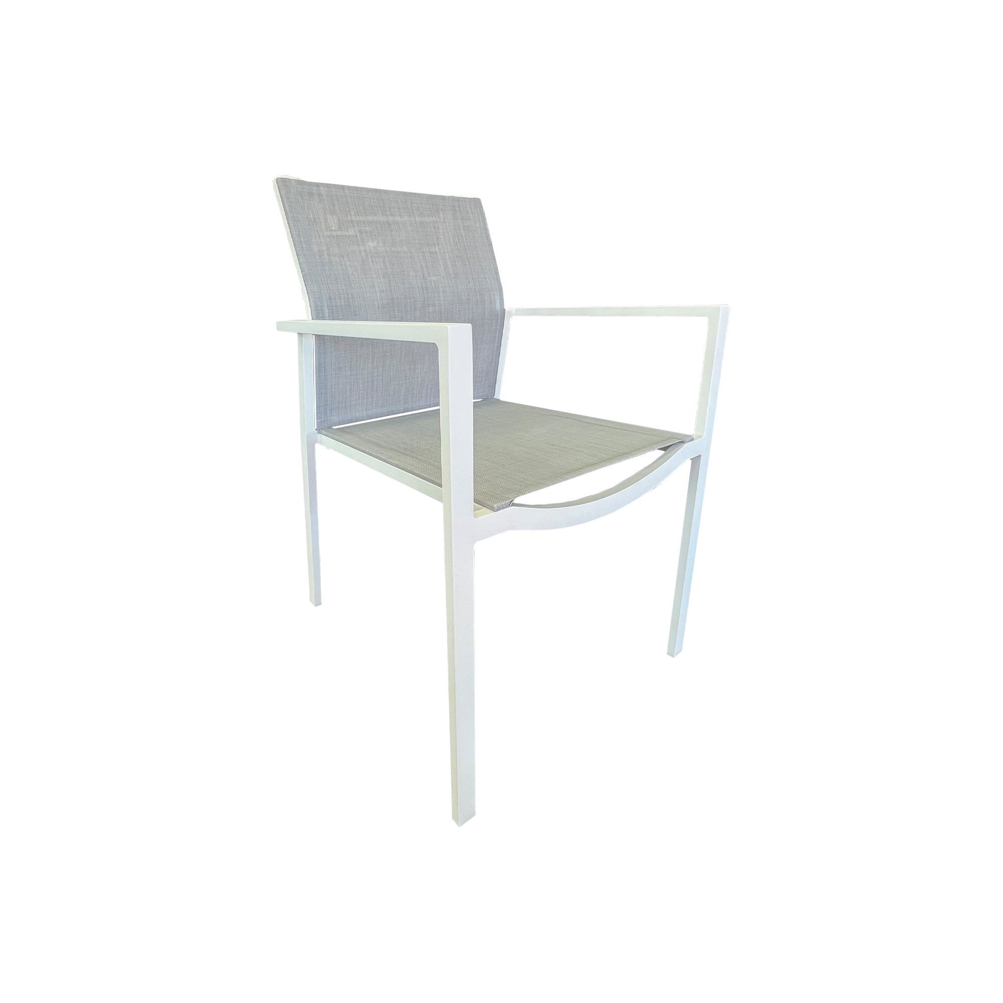 Crafted with a powder-coated aluminium frame in crisp white, this chair offers strength and weather resistance. The single-layer sling provides a comfortable seating surface that dries rapidly after exposure to moisture, ensuring your chair is always ready for use.