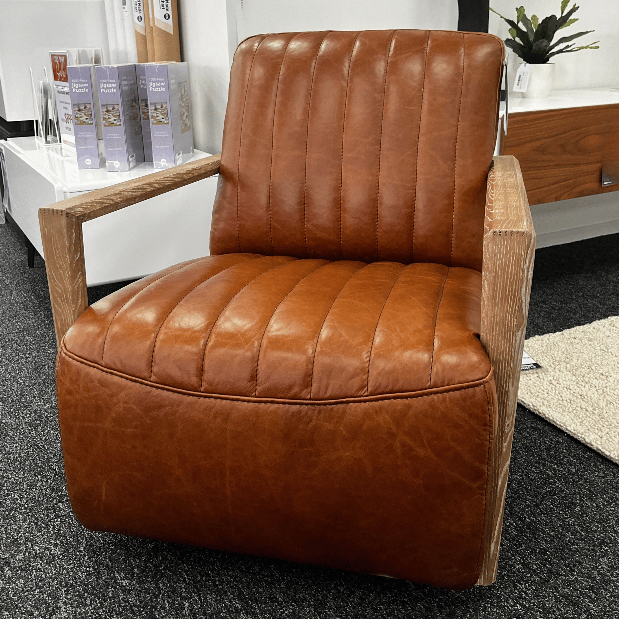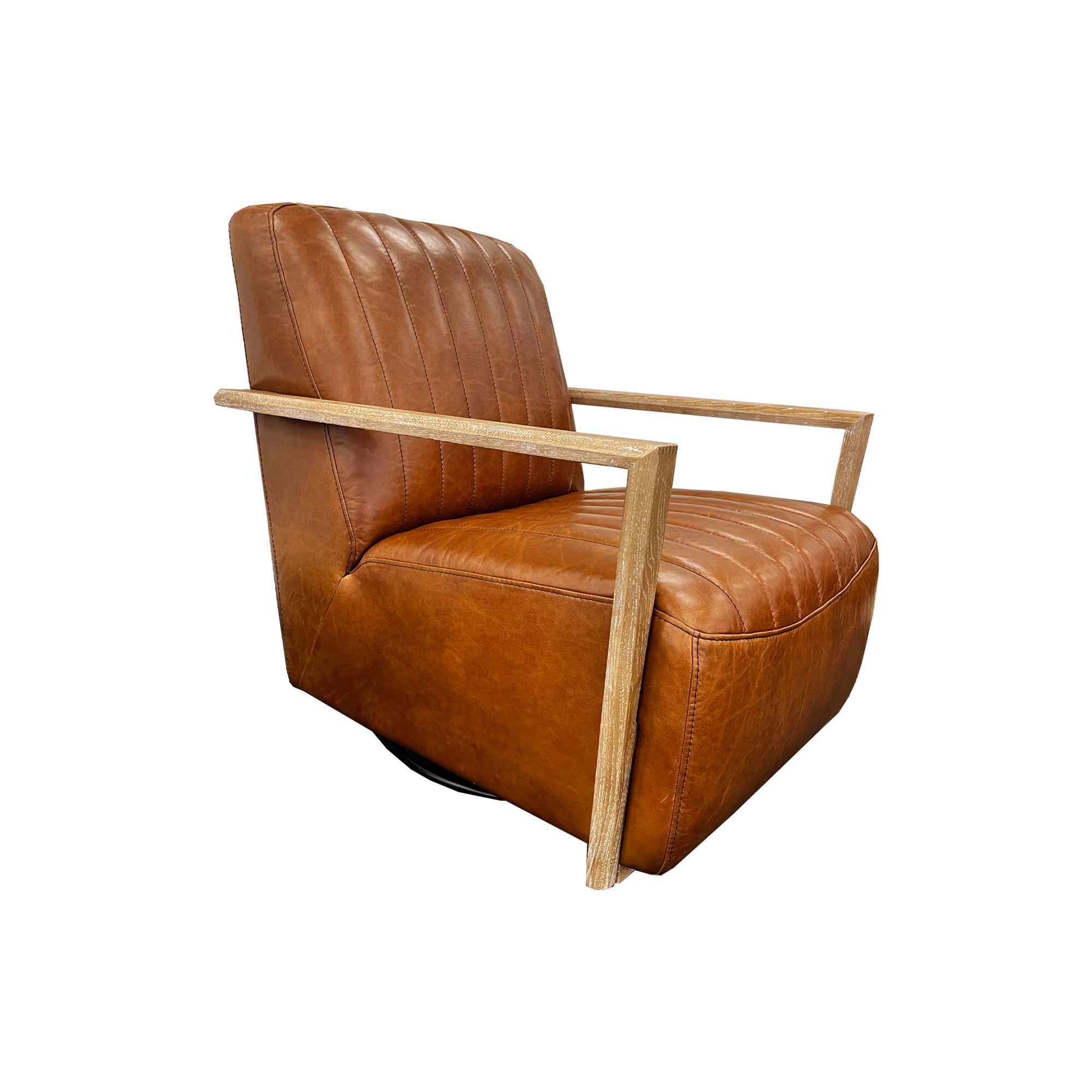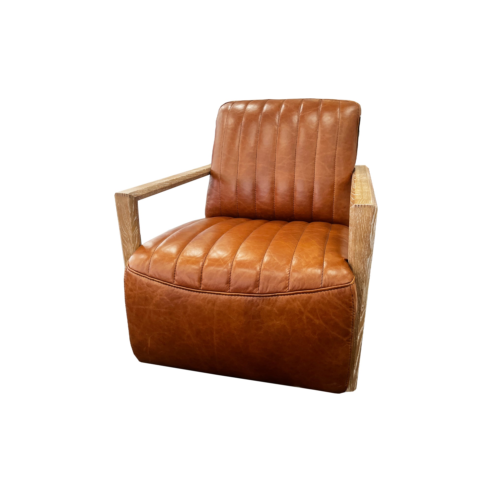 Add a touch of antique elegance to your living space with the Otto Occasional Chair in antique tan leather with white-washed oak armrests.