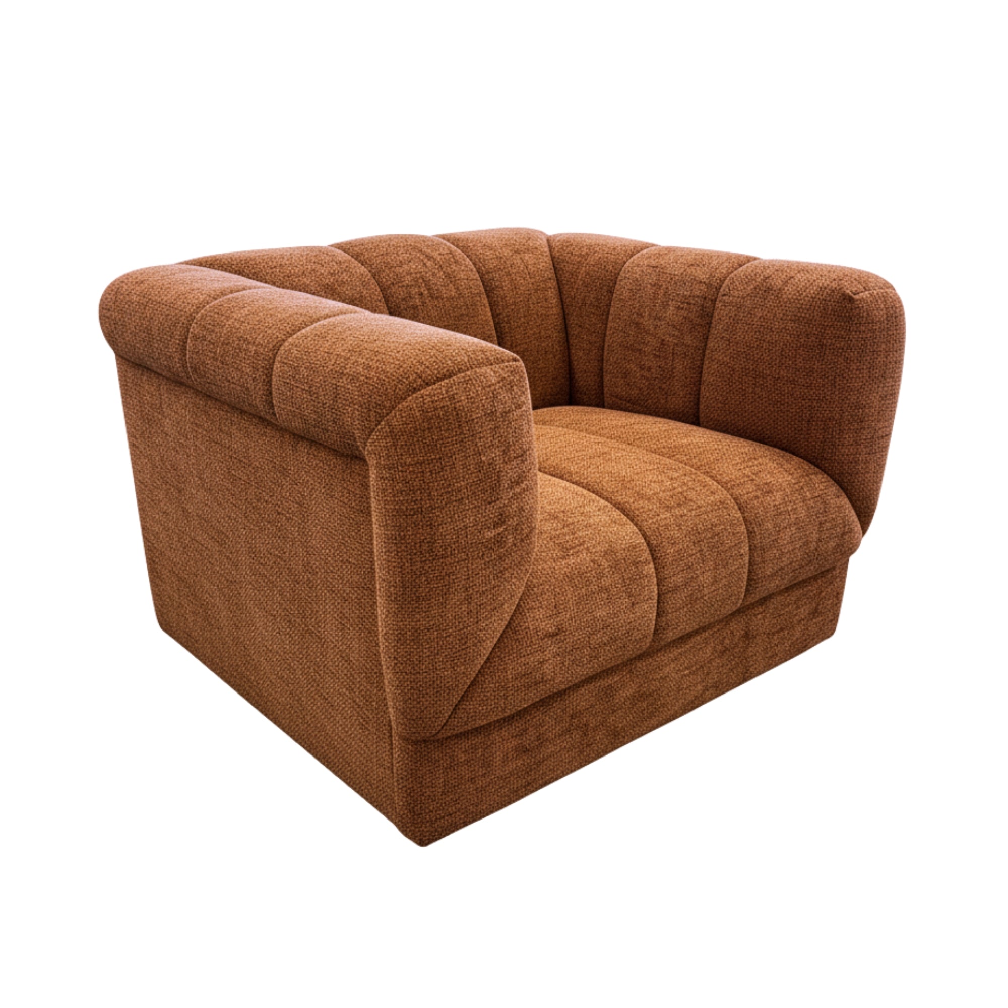 A modern lounge chair designed for style and comfort. Featuring deep channel details and a richly textured fabric, making it ideal for contemporary living rooms. Generous seating, supportive cushioning, and a sculptural silhouette create a statement sofa set that works beautifully in modern New Zealand homes.
