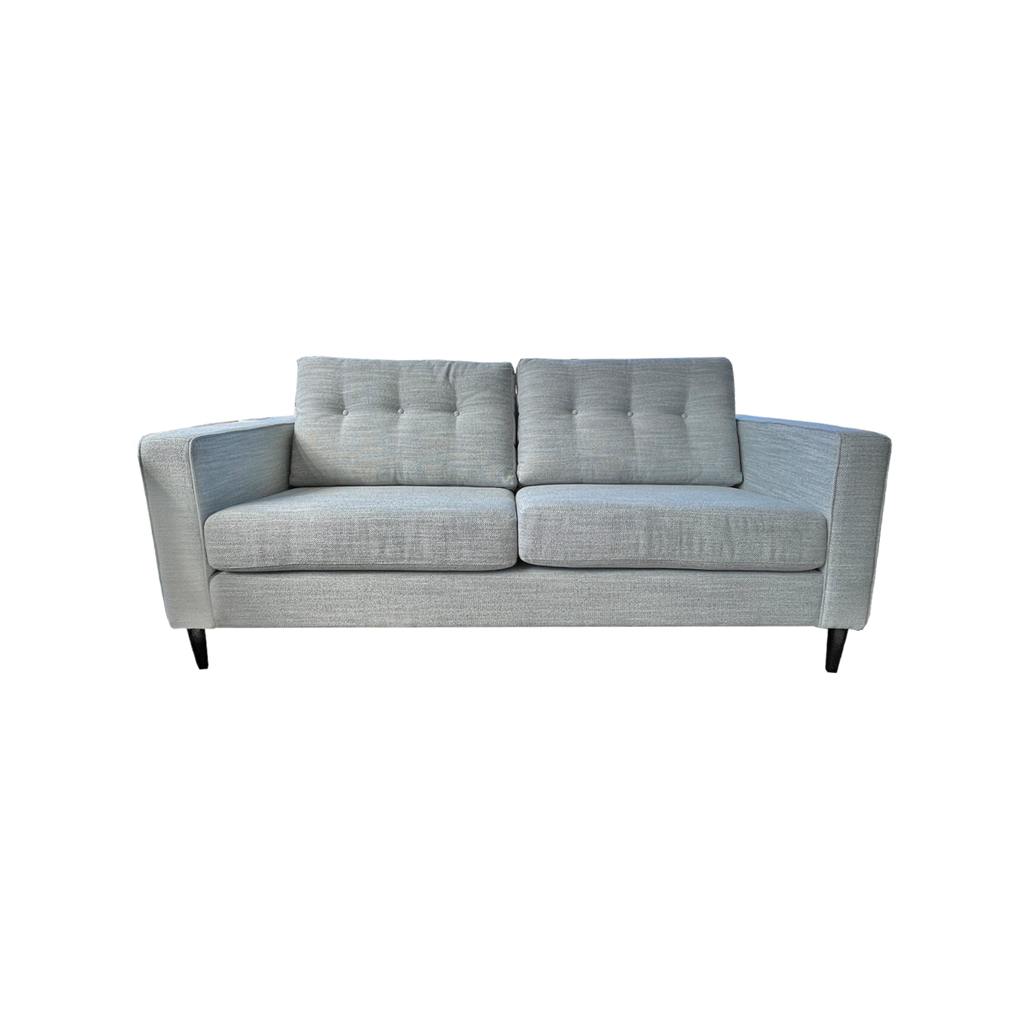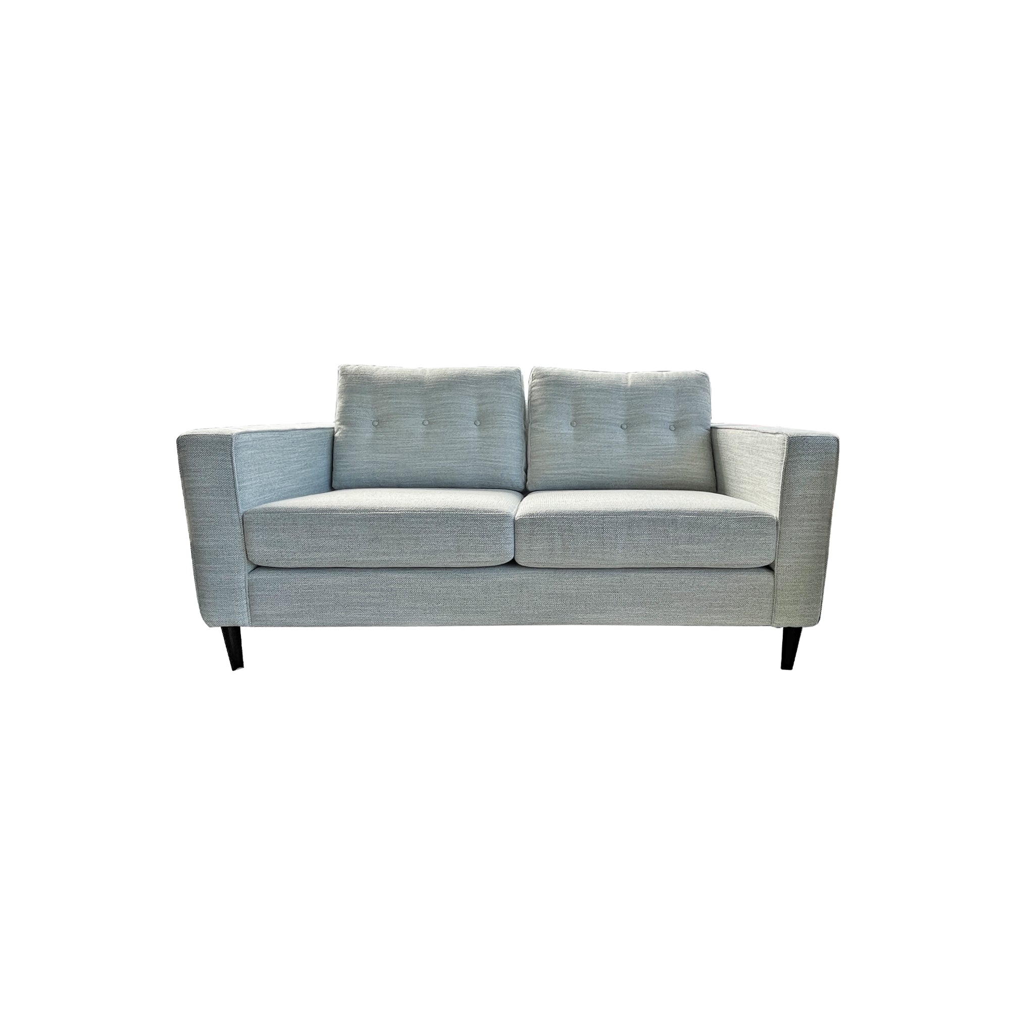 The Prague 3+2.5 Suite manufactured in Narla Seafoam fabric, has timber legs with a natural stain. The back cushions have 3x buttons on each for added detail. The Prague Sofa is proudly made in New Zealand with orders available in a range of fabrics.