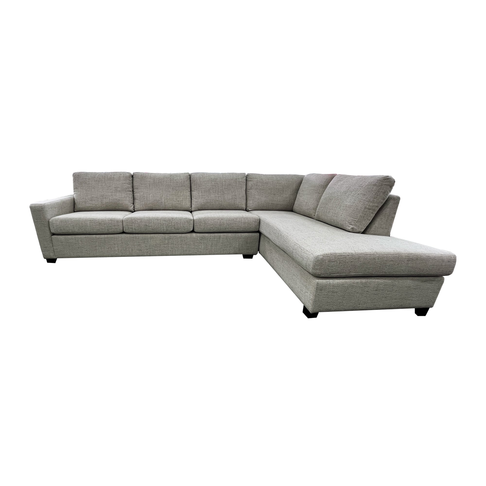 The Raven 3.5 Seater with corner extension chaise in Kenji Pumice fabric has a contemporary shape and relaxed feel. Handcrafted in New Zealand using excellent quality materials, this design is available as a sofa bed using a high-class bi-fold mechanism with a 120mm innerspring mattress.