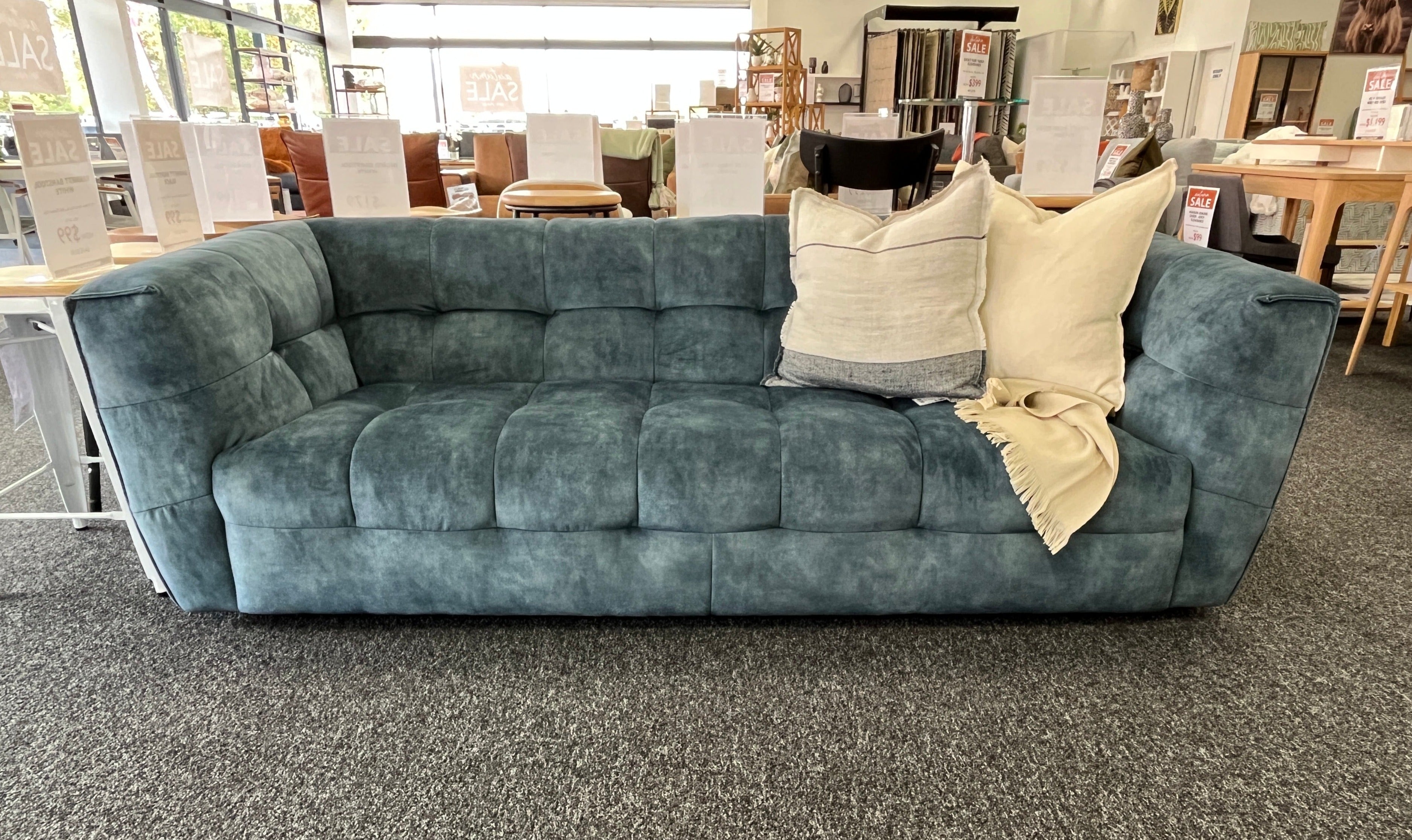 The luxurious Cruz 3-Seater sofa in Indigo Teal Velvet fabric is the epitome of elegance and comfort. This stunning piece is expertly crafted with plush velvet fabric in a deep teal hue, creating a striking and sophisticated statement in any living space. The deep buttoning detail adds a touch of classic style to the design, while also providing a plush and supportive feel.