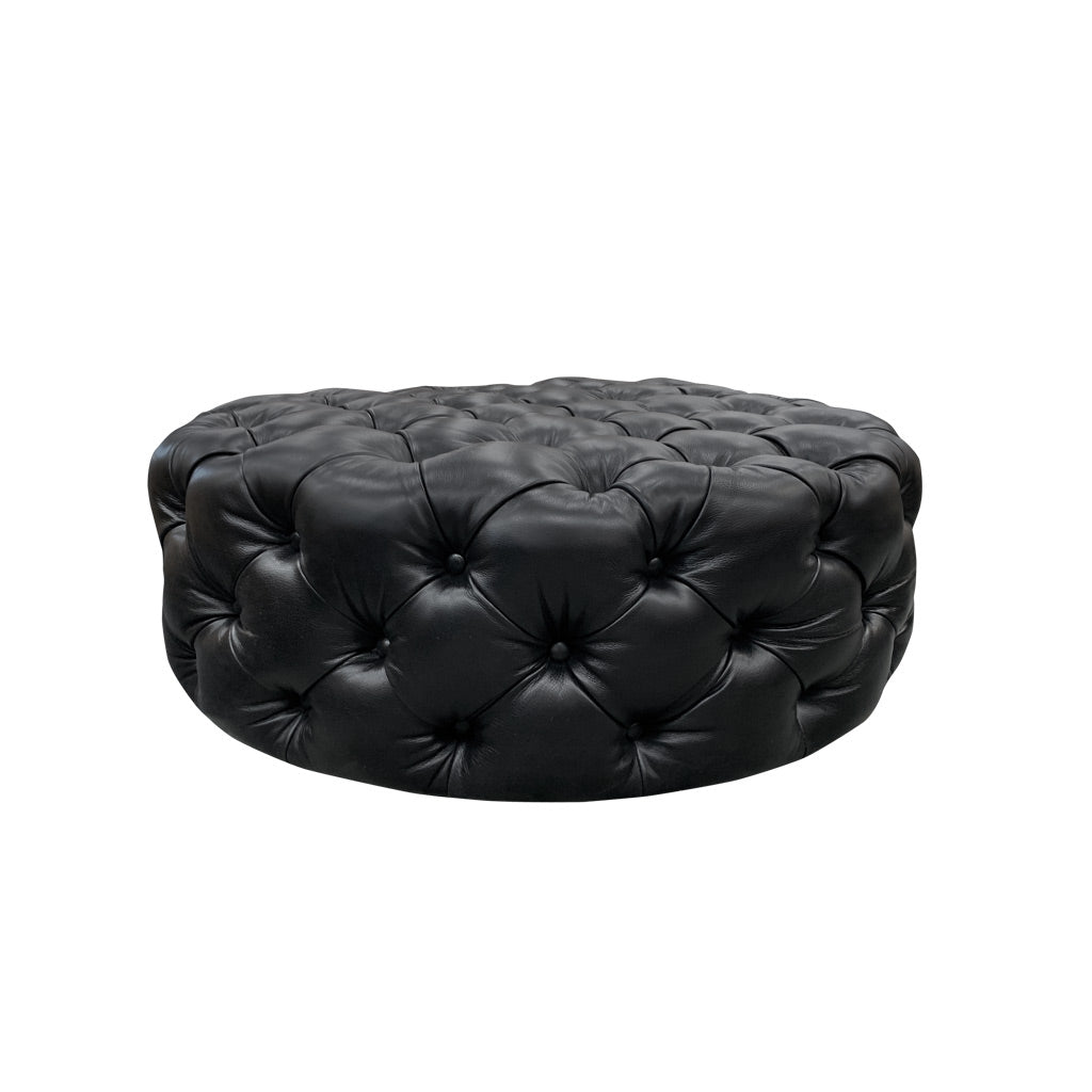 The Hoxton button leather ottoman is crafted in 100% Cambridge black full grain leather. Add this ottoman to your existing leather suite to enhance the style of your living space.