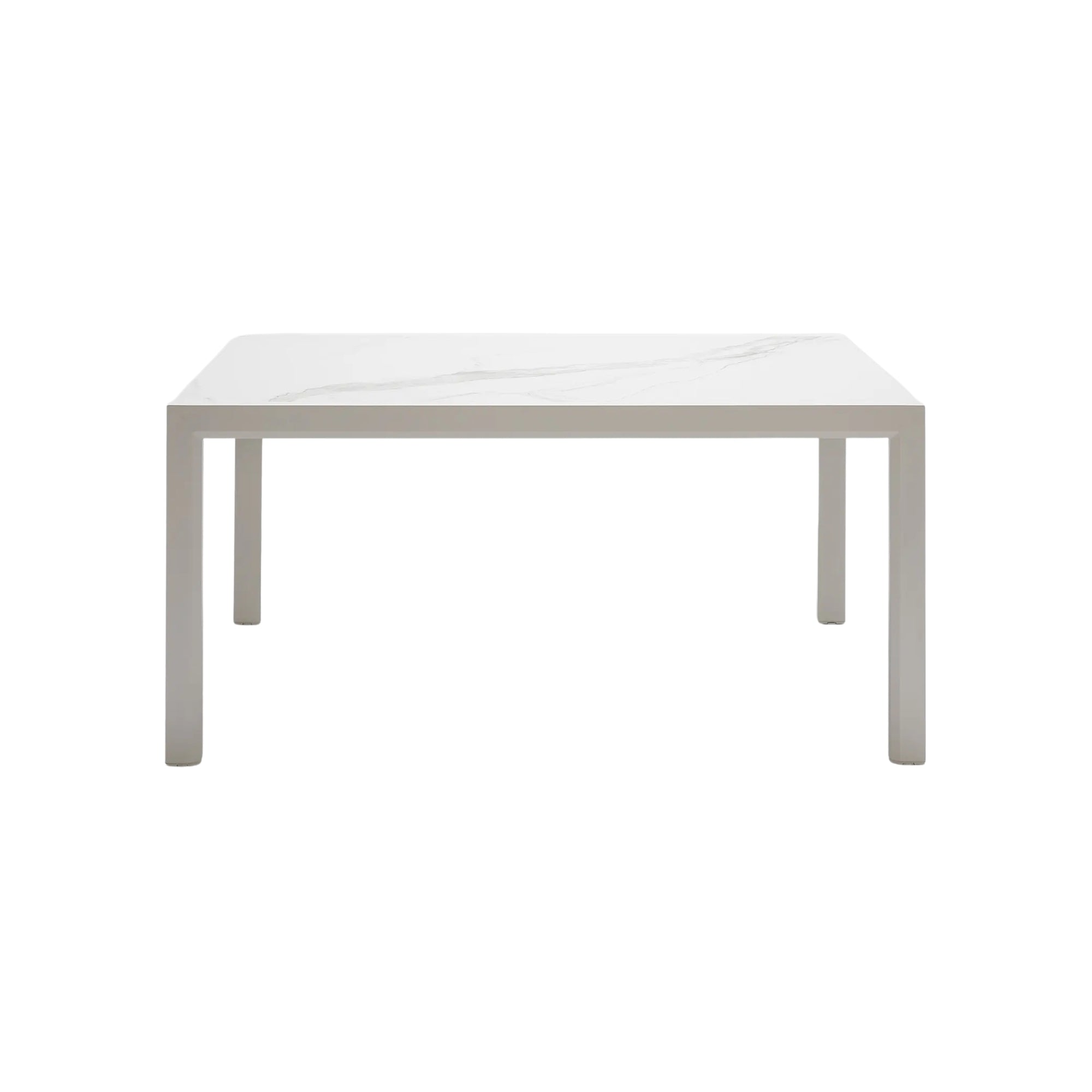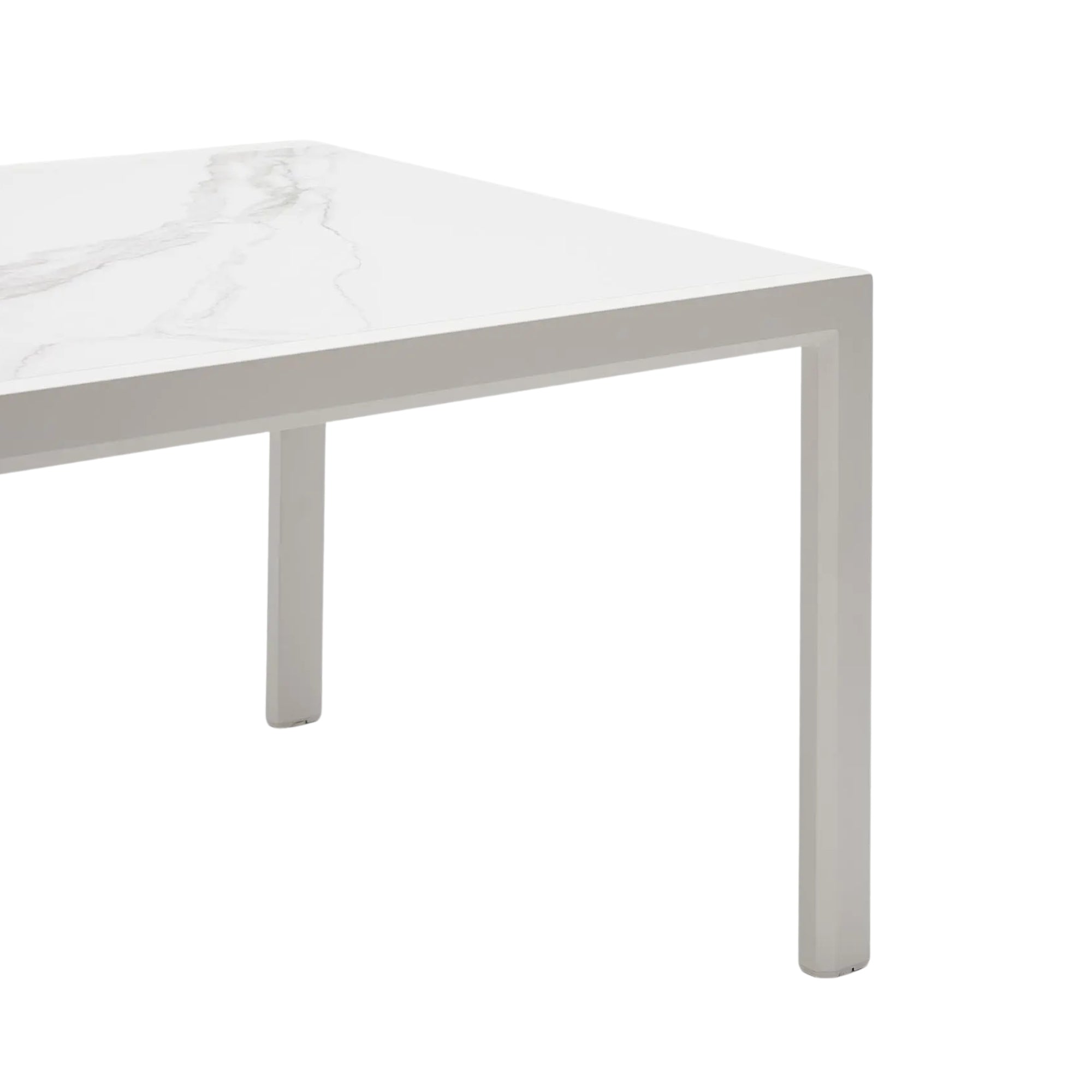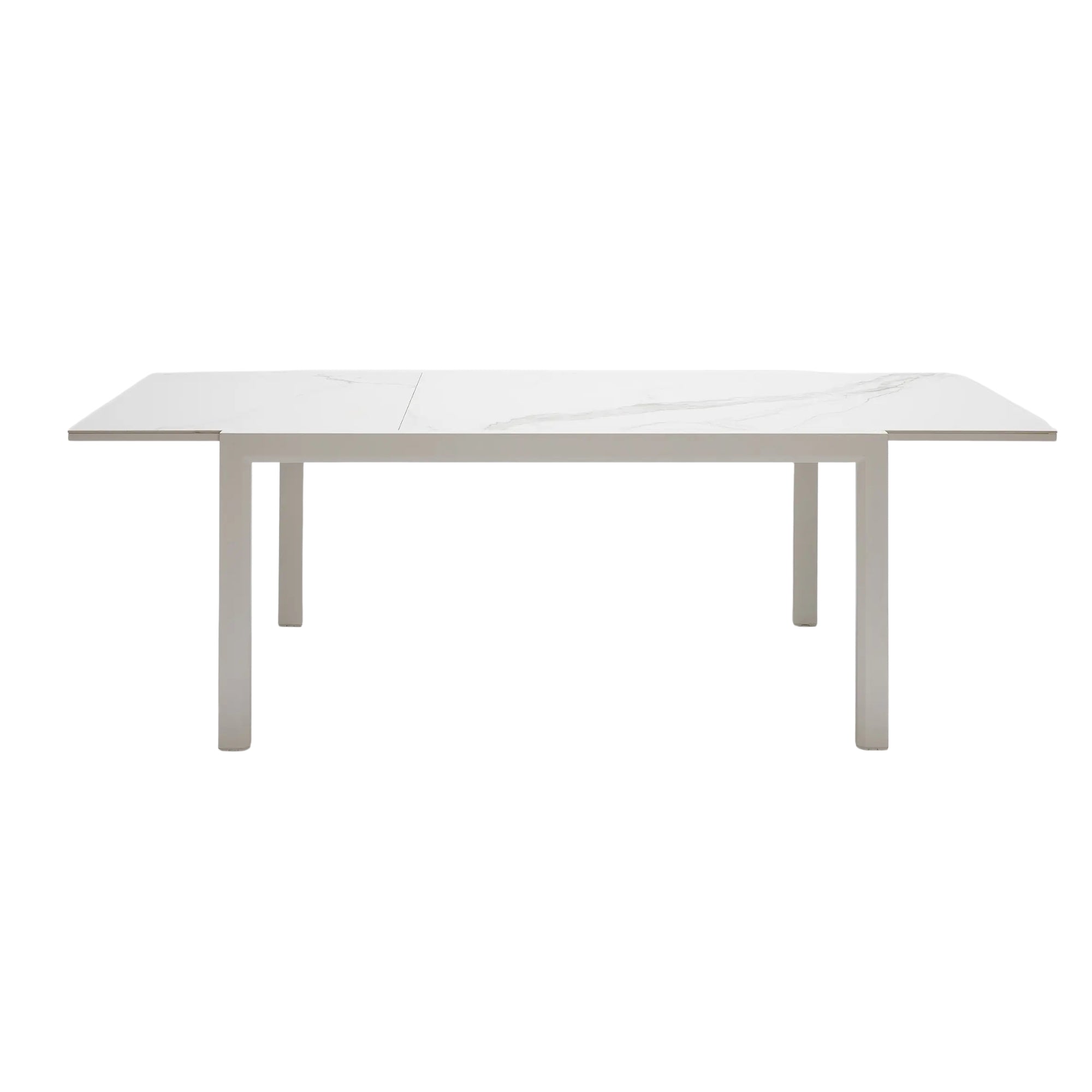 The Malmo outdoor extension dining table is built to last and designed for all-weather use. Its matte white ceramic top gives it a modern look while being easy to maintain.
