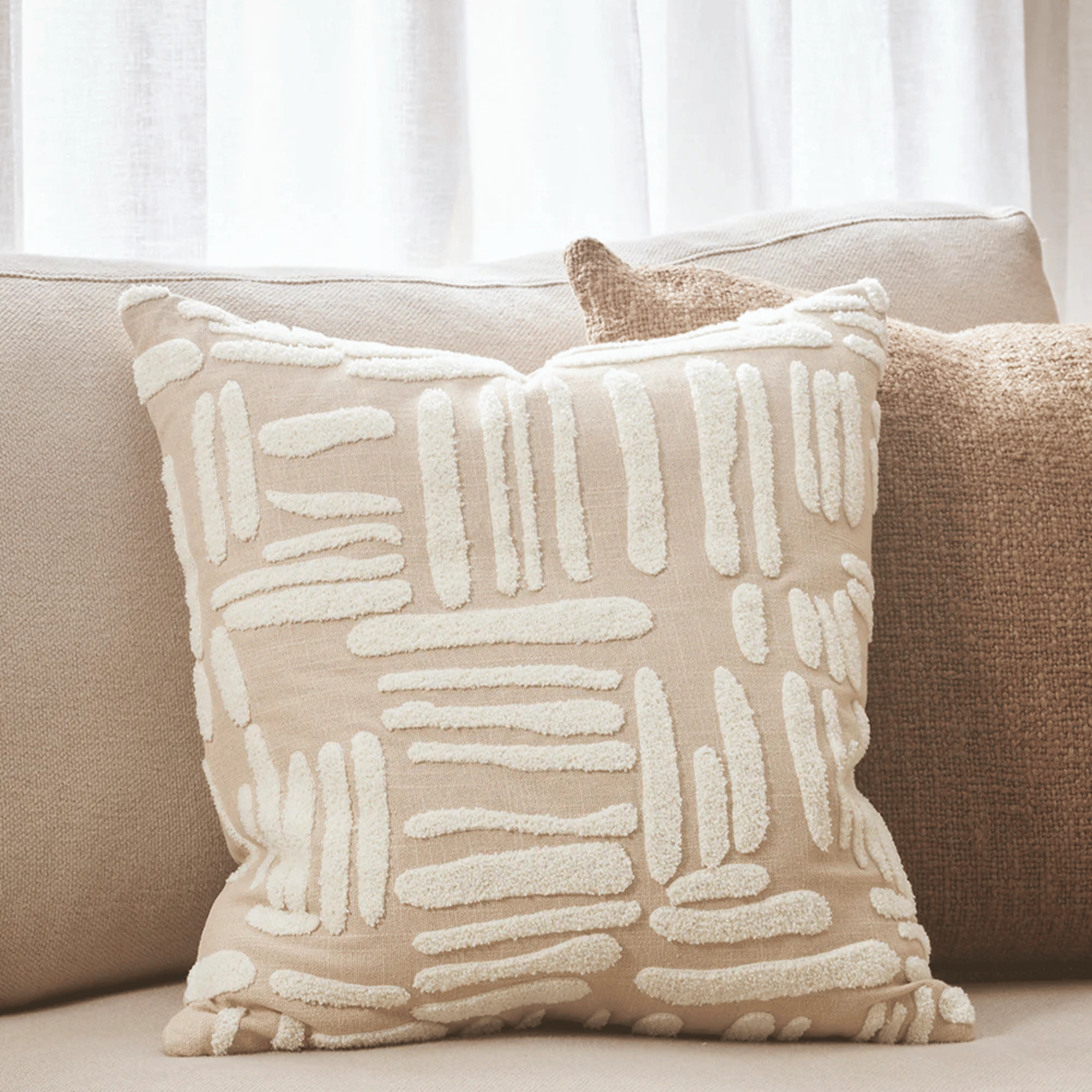 A stunning textural piece, Gobi features densely tufted embroidery in 100% cotton. Captured in a neutral palette, the subtly tribal surface design adds an inviting, tactile quality to interiors.