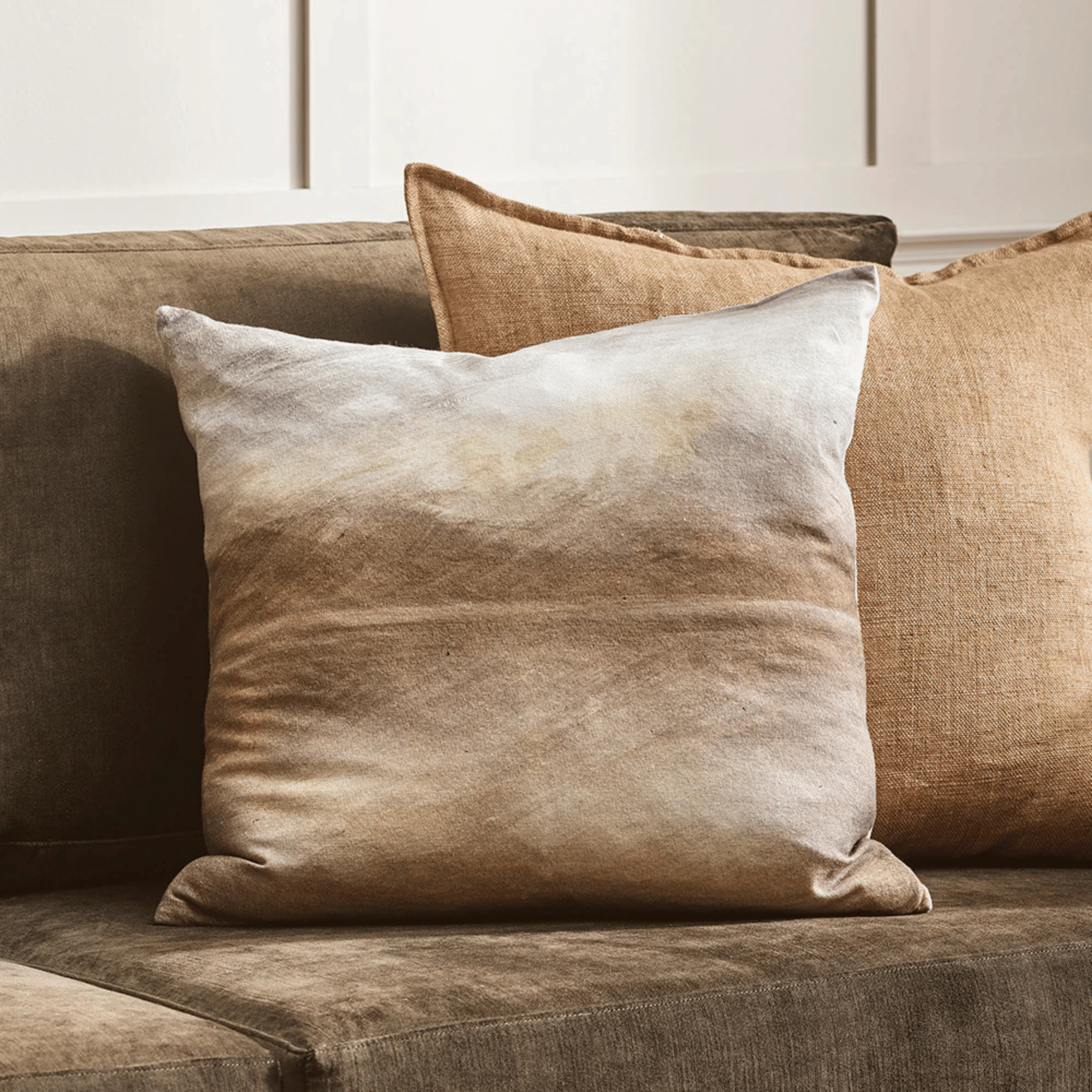 Create an atmospheric space with the moody tones of our Headlands cushion. Hand-painted in abstract brushstrokes, a palette of earthy brown and slate blue instils nature-inspired elegance to your home.