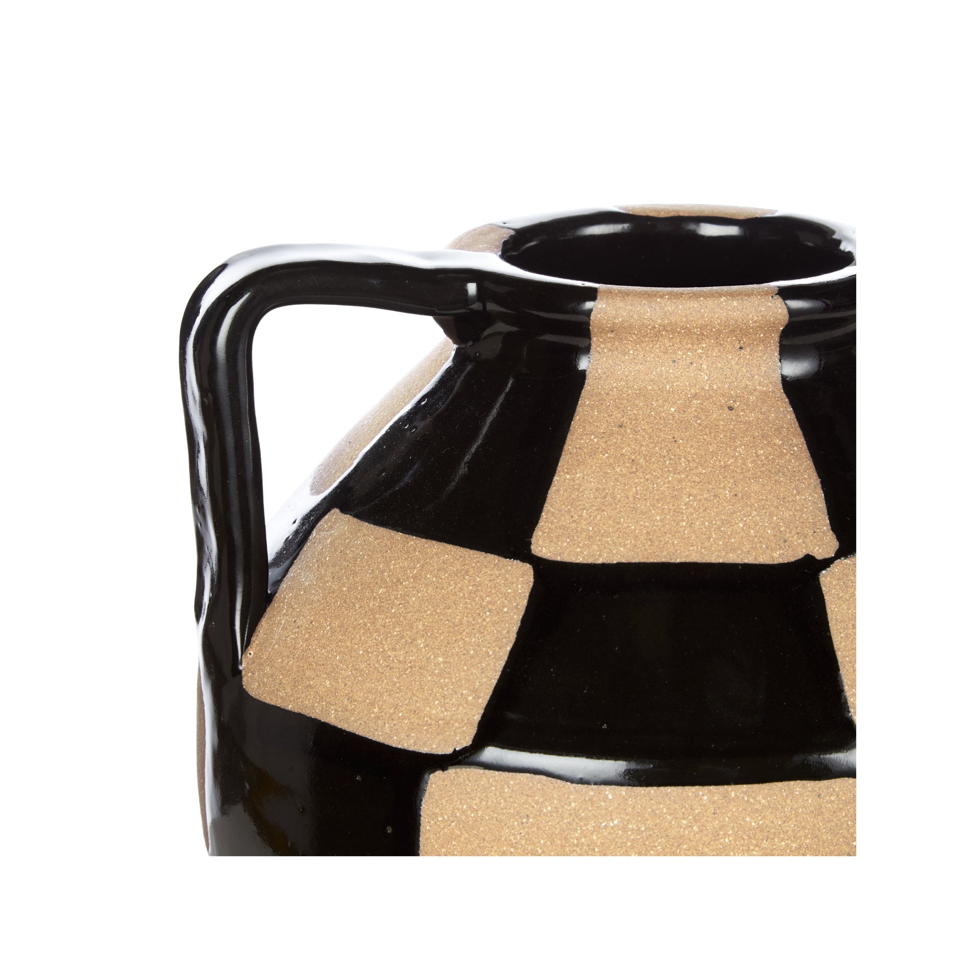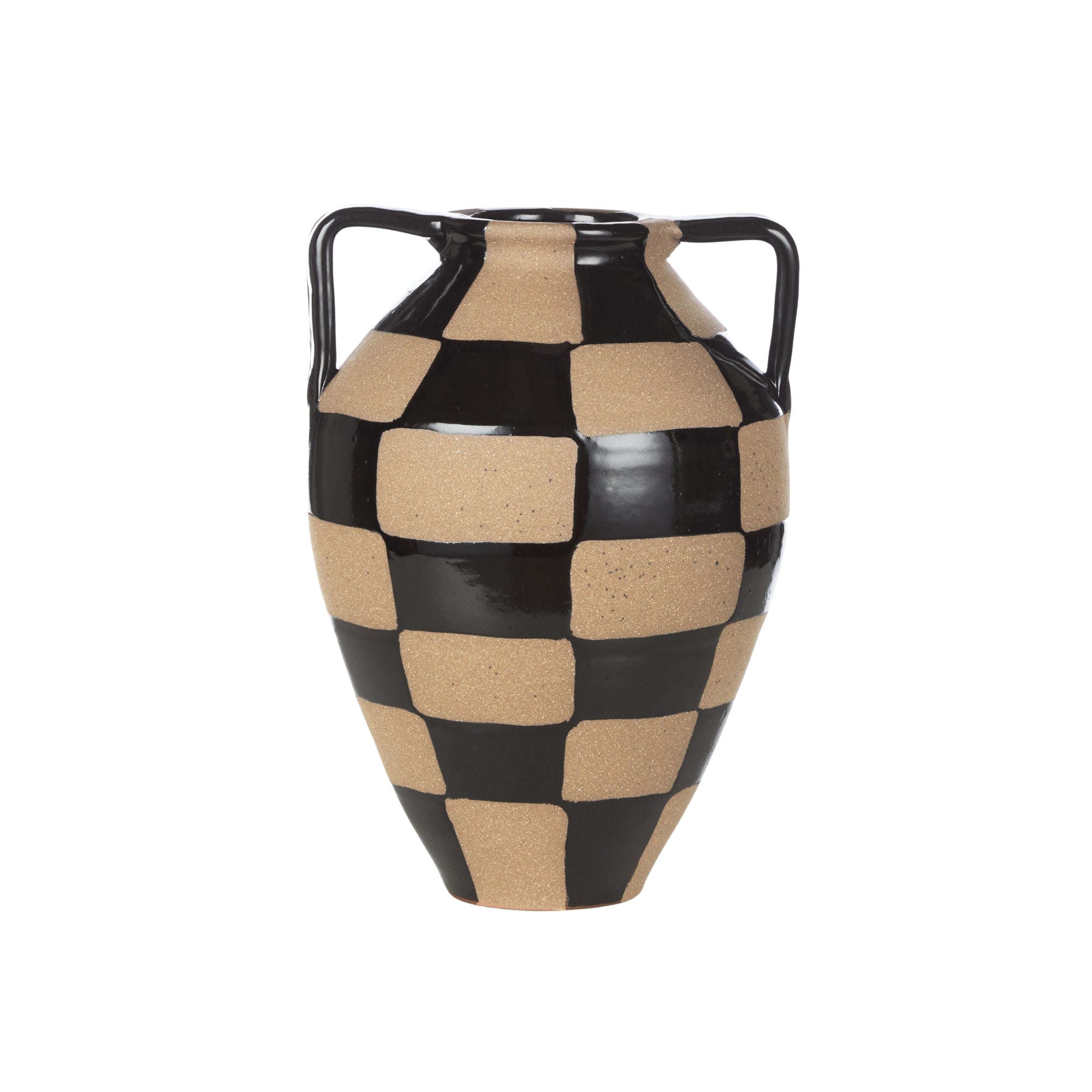 Decorative vessels are a simple but effective way to enhance any space. This Fulton Vase is crafted from terracotta in the form of a Greek urn with handles, with a brown and black checkered pattern. The elegant contemporary silhouette makes it a true statement piece on a tabletop, shelf or window display. It’s perfect to display both fresh and faux flowers in any corner of the home.