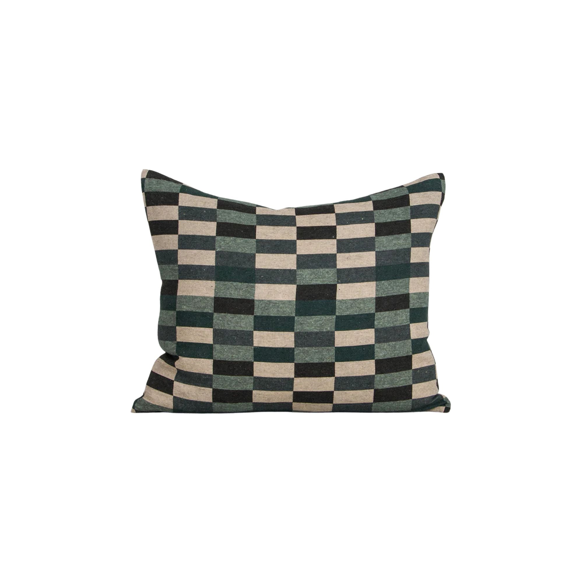 Inspired by the tranquil palette of open skies and alpine lakes, the Hugo lumbar cushion blends natural inspiration with geometric form. Printed on a pure linen base, blue and misty aqua tones come together in a grid design, bringing a calm, contemplative presence to living spaces.