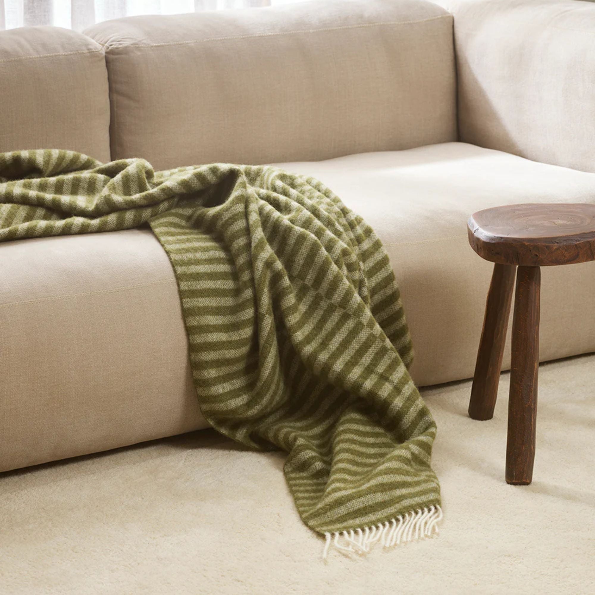 Featuring an offset linear design in olive tones, the Noah throw adds a captivating sense of fun to contemporary spaces. Woven from soft New Zealand wool, the cosy throw is the perfect blend of comfort and style.