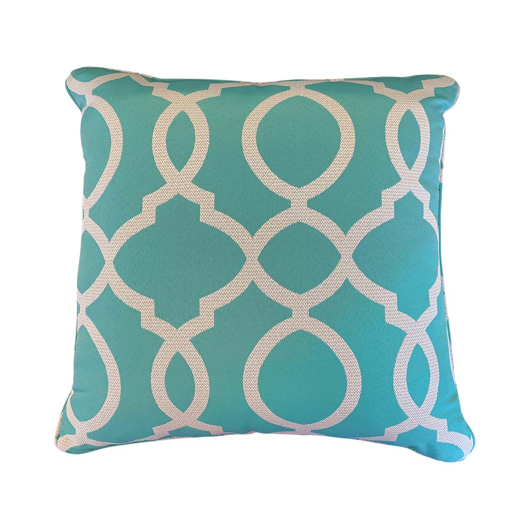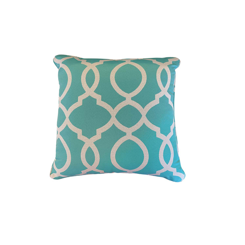 The Vanity Lakeside Axroma Outdoor Cushion is made from outdoor specific olefin fabric with a quick-dry fill and has the same print on the front and reverse side.