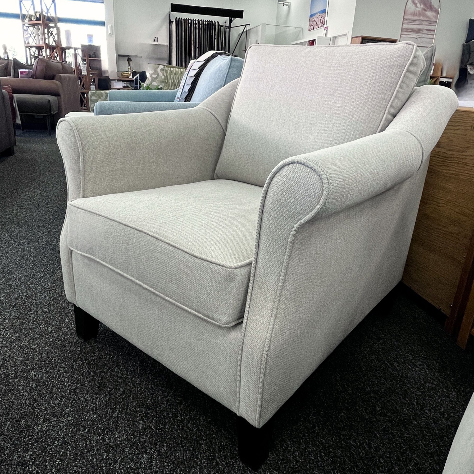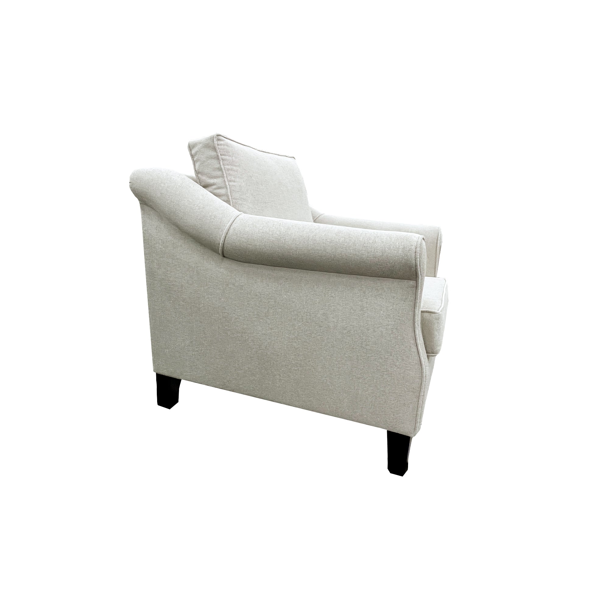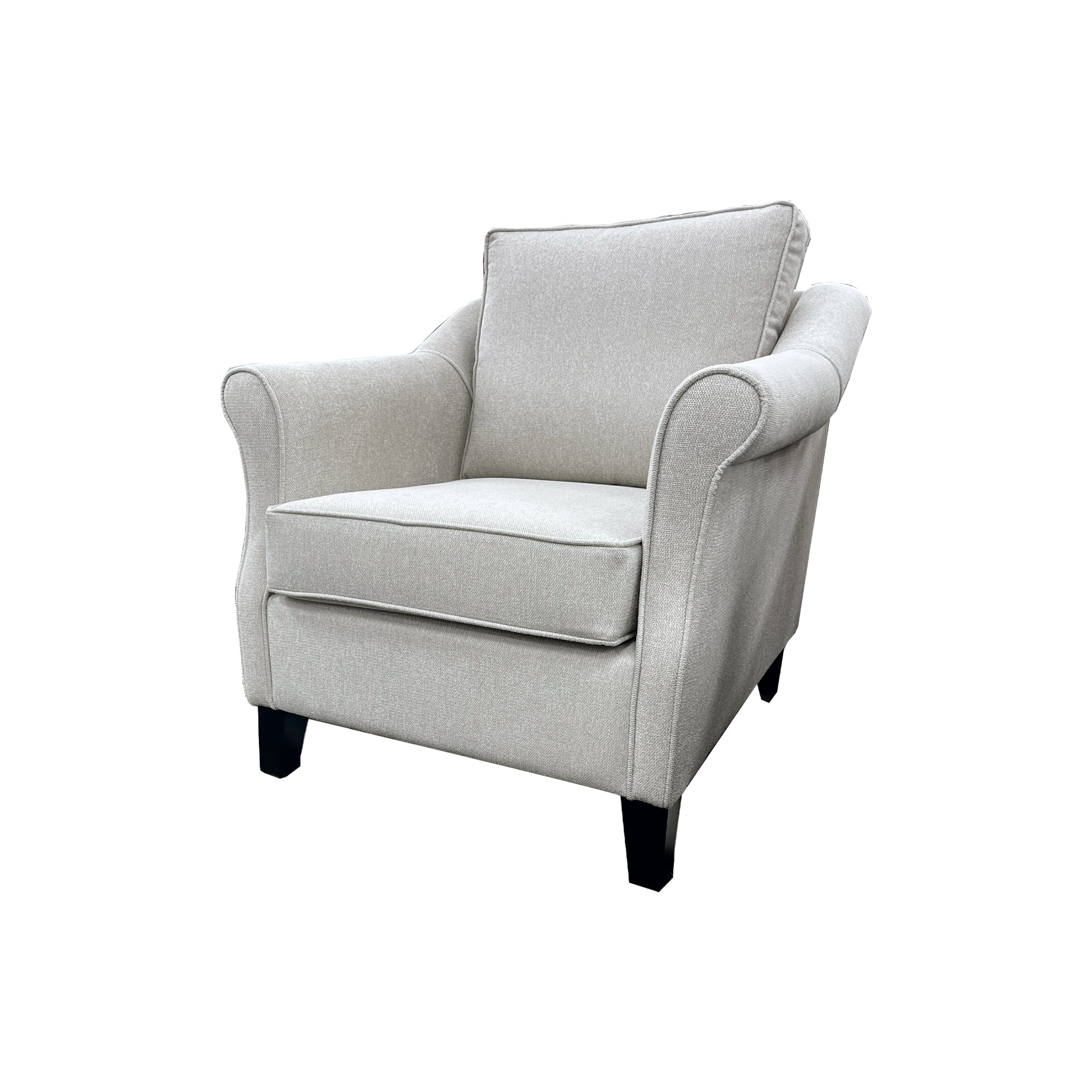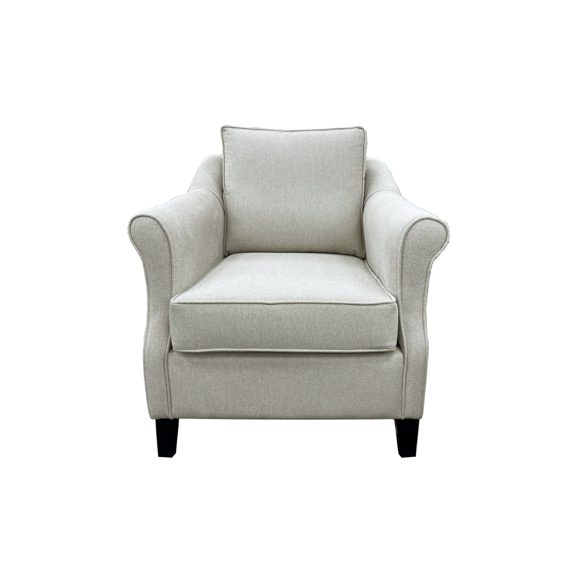 The Flora chair is an armchair with a delicately rolled arm that will suit traditional decor. Featured in Aston Vanilla fabric the Flora chair is available to order in a wide selection of colours/fabrics. This model is made in NZ.
