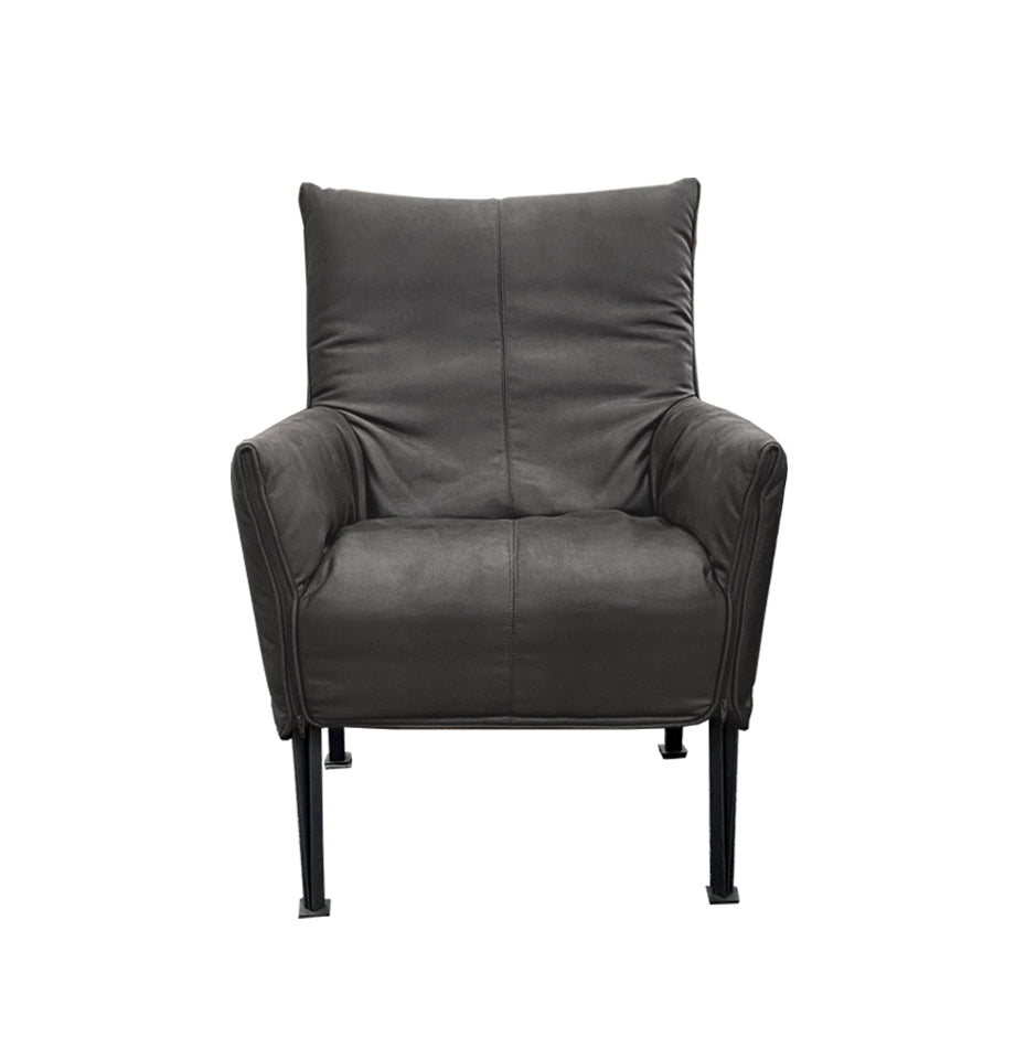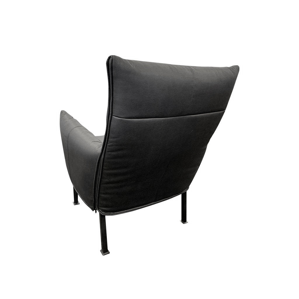 The NZ made Hugo chair in Eastwood Ebony Fabric has a powder-coated steel frame with fabric slip-cover and chunky zip detailing. A matching footstool is also available to order.