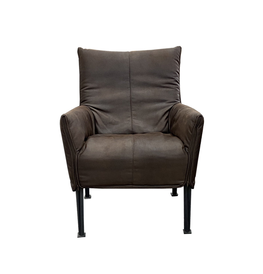 The NZ made Hugo chair in Eastwood Java Fabric has a powder-coated steel frame with fabric slip-cover and chunky zip detailing. A matching footstool is also available to order.