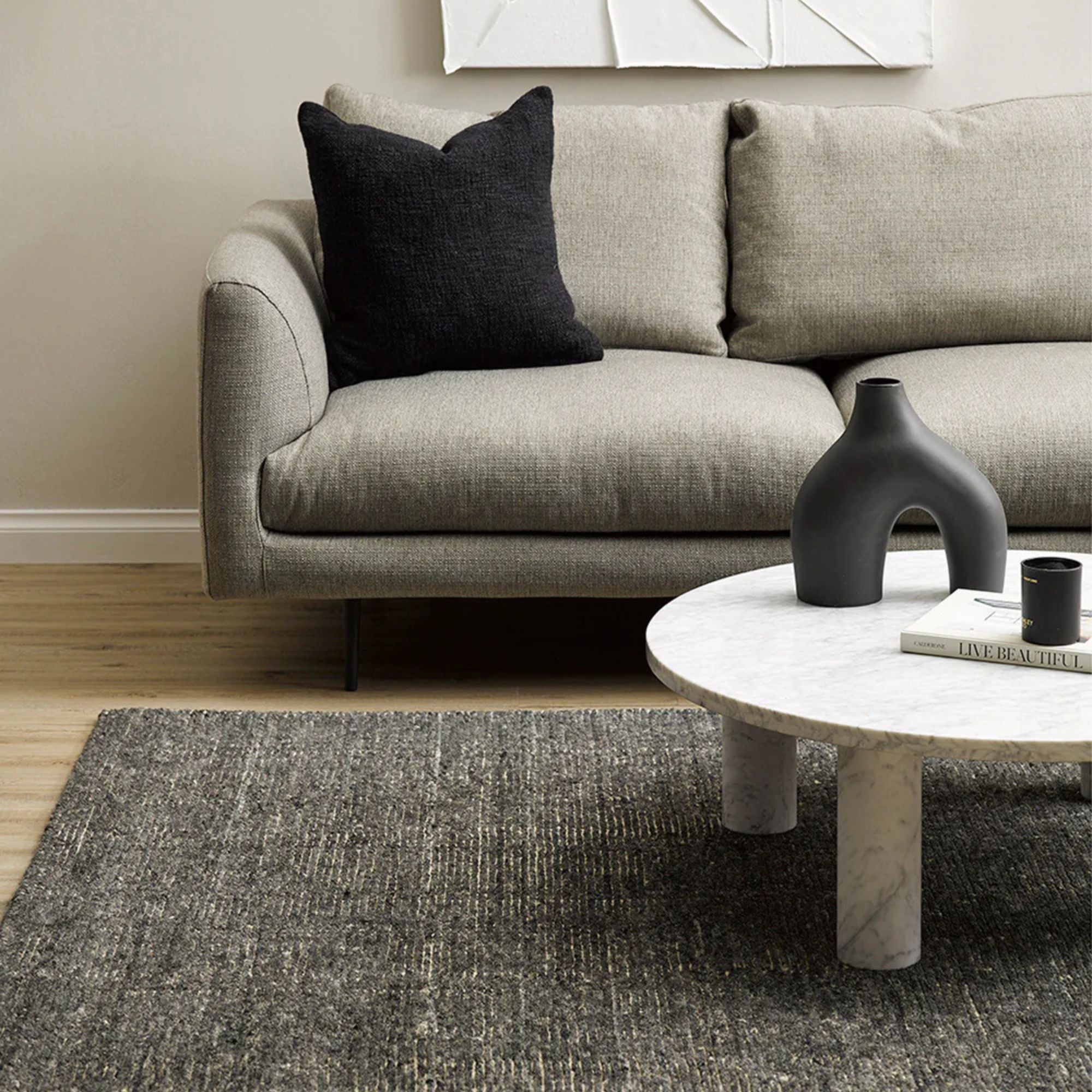 An understated floor rug that is both simple and luxurious. The Emmett is hand-knotted from 100% wool, creating a soft minimal pile. Featuring a fine linear pattern with a lighter base tone, this floor rug is perfect for crafting a refined and textural interior.