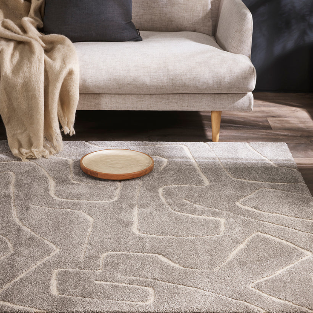 A subtle, abstract piece in tones of pewter and ivory, Labyrinth catches the light beautifully and is incredibly easy to style. Made in Belgium, from premium materials, this floor rug is sure to appeal to all tastes.