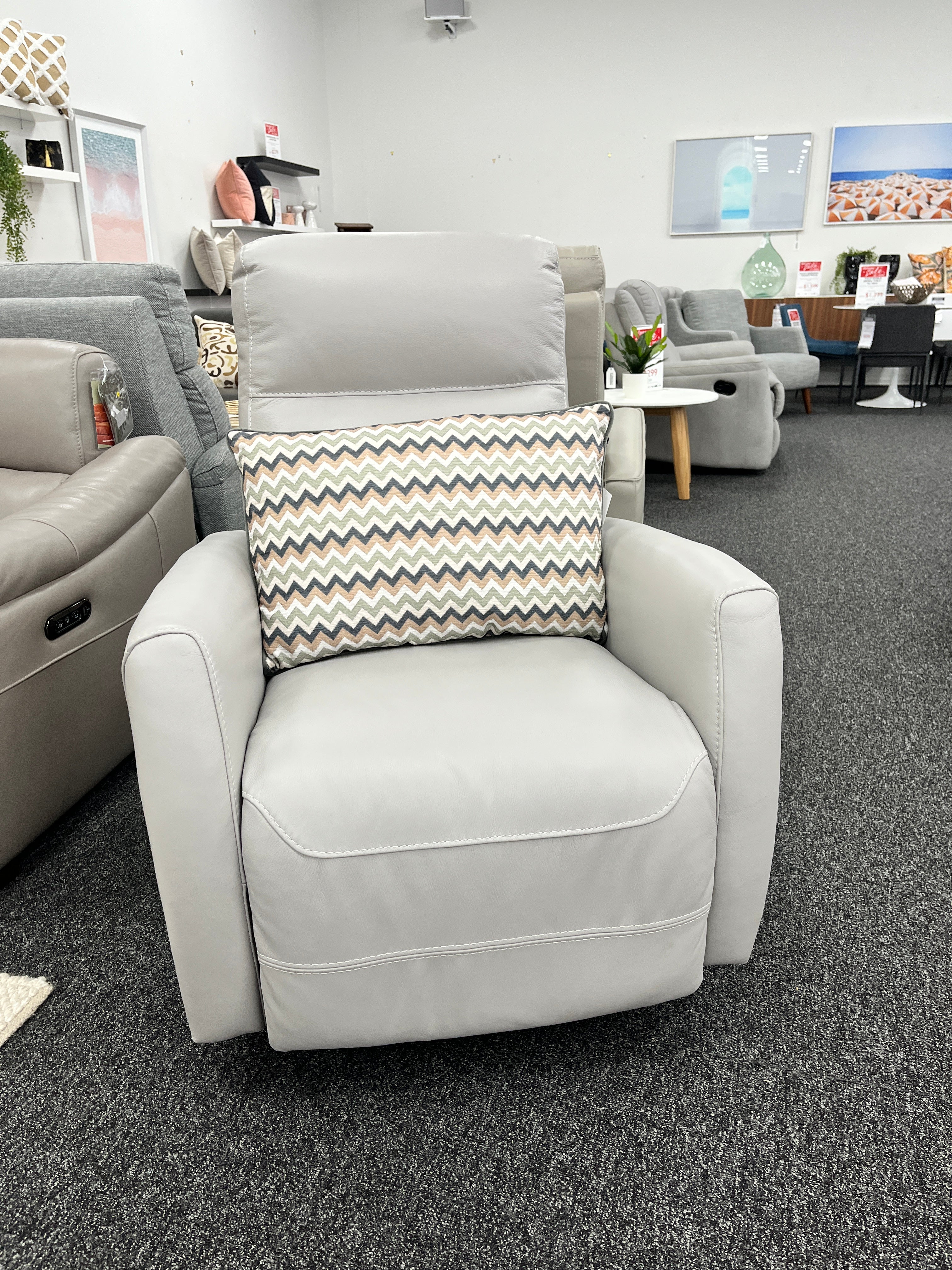 Bring relaxation to your living room with our Napoli Swivel Recliner Chair in light grey full grain Cat 16 leather. The Napoli swivel recliner offers a compact size without compromising on the seating area.