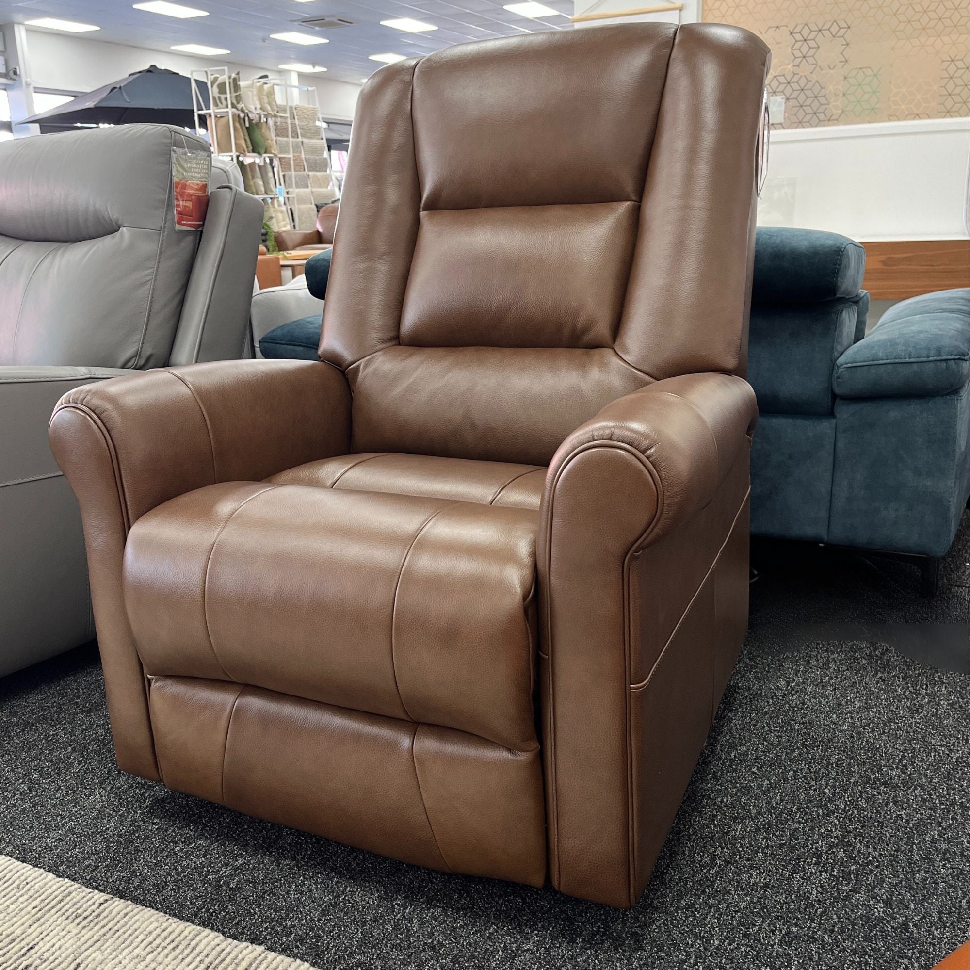 Windsor Rolled Arm Elec Lift & Recline Chair - Urban Sofa - Old World Saddle Leather