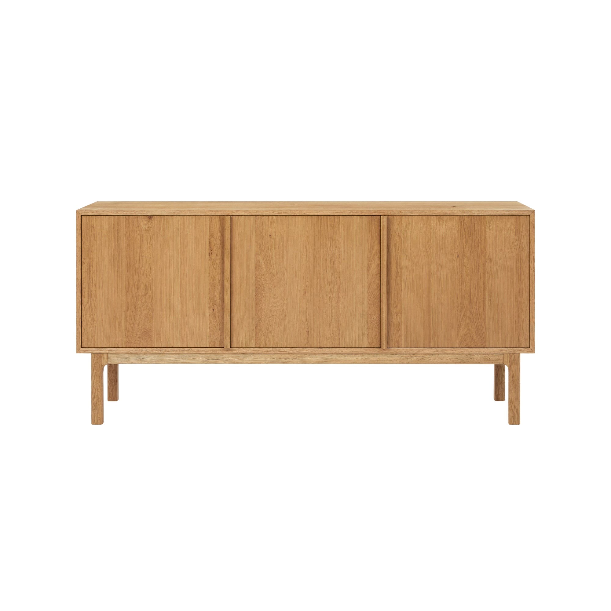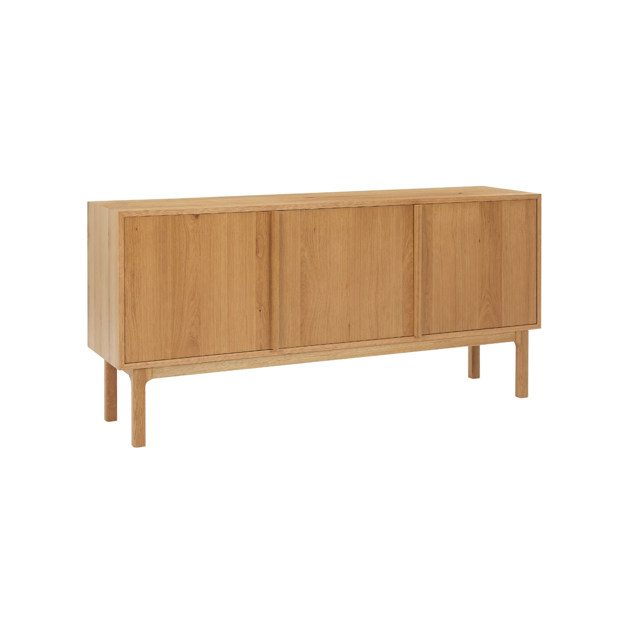 Crafted from solid American white oak, this sideboard showcases clean lines and warm timber grain in a beautifully balanced form. Elevated on slim legs, it brings a light, architectural presence while offering generous, practical storage.