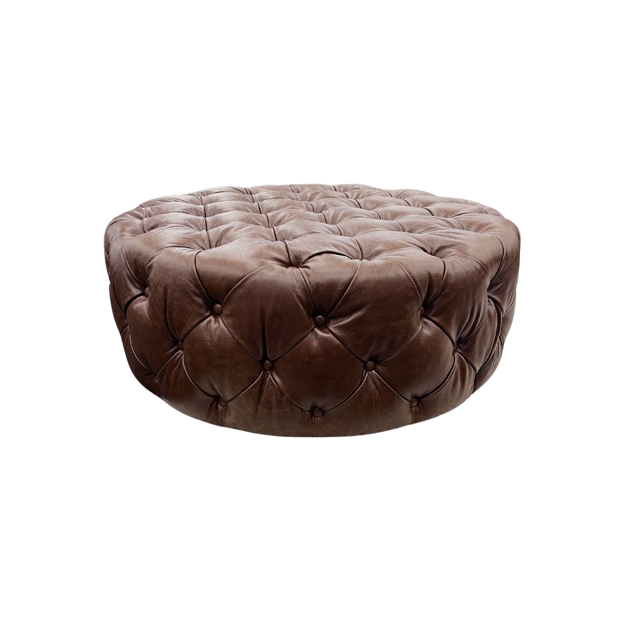 The Hoxton button leather ottoman is crafted in Kings Road Tan leather. Add this ottoman to your lounge suite to enhance the style of your living space.