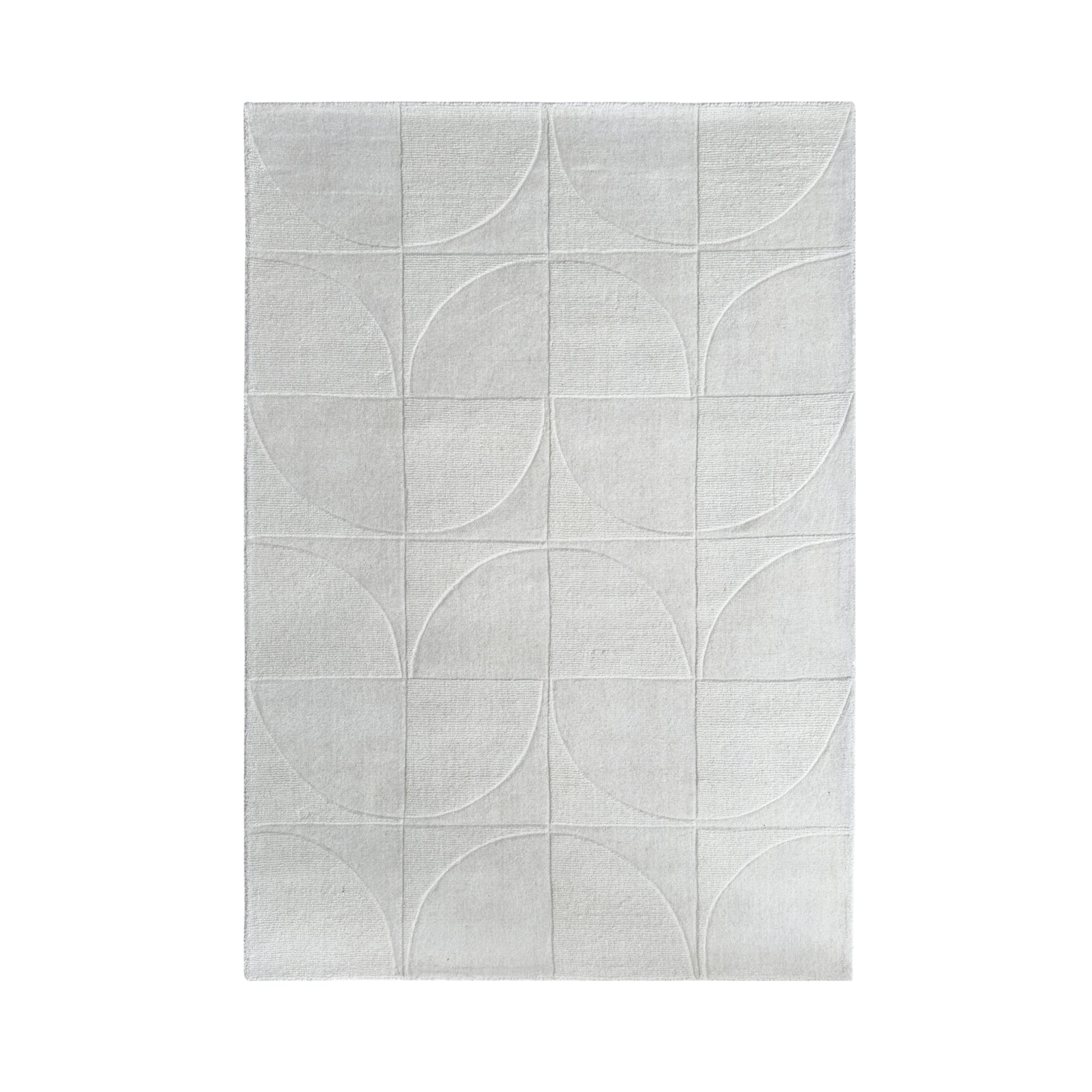 Handmade in India from 100% pure wool, this timeless rug features a classic semi-circle & geometric pattern created with an overtufted finish for added texture and depth. The soft ivory tone enhances its understated elegance, making it a versatile piece that brings warmth and sophistication to any interior.